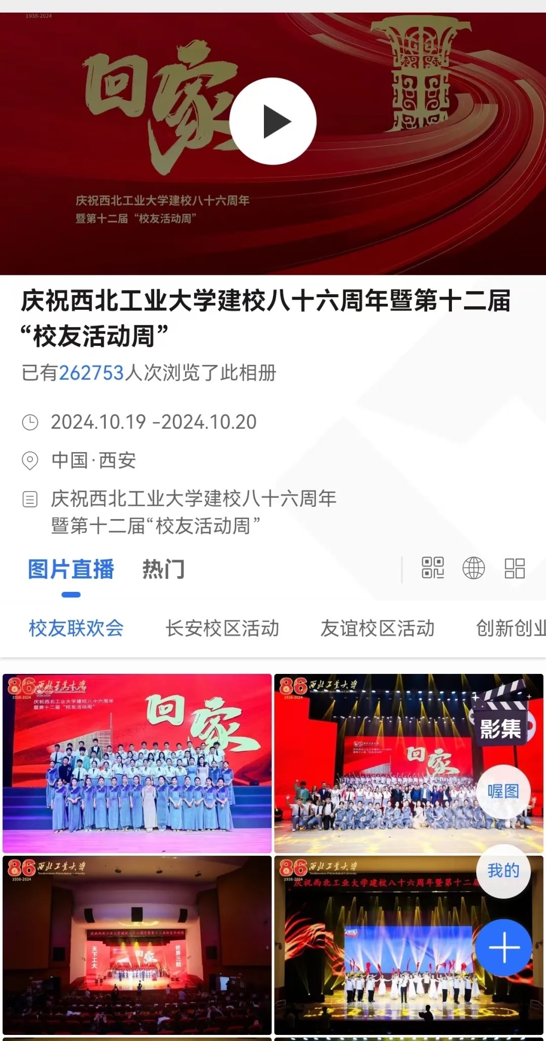 翱翔学生中心广场作为本次校友返校系列活动的集结营,同时开设校园徒步活动奖品兑换、校友资料征集、基金会公益项目展示、西工大文创展销、出版社图书及文化创意周边展示、工大校园变迁摄影展、校园储蓄卡办理、学位服打卡拍照等活动,校友们呼朋引伴、合影留念,“我爱西工大!”“祝福母校!”的欢呼声此起彼伏,经久不断。