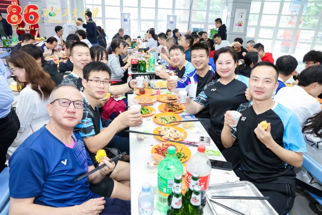 詹浩和校长助理王宇波代表学校,和校友们一一碰杯,对大家回到母校表示欢迎,感谢大家对母校发展的关注支持。相关职能部门及学院负责同志陪同。