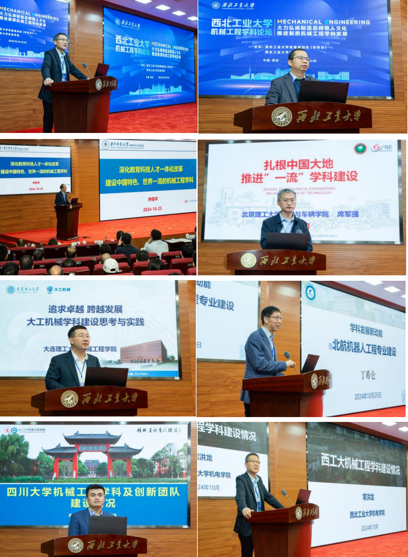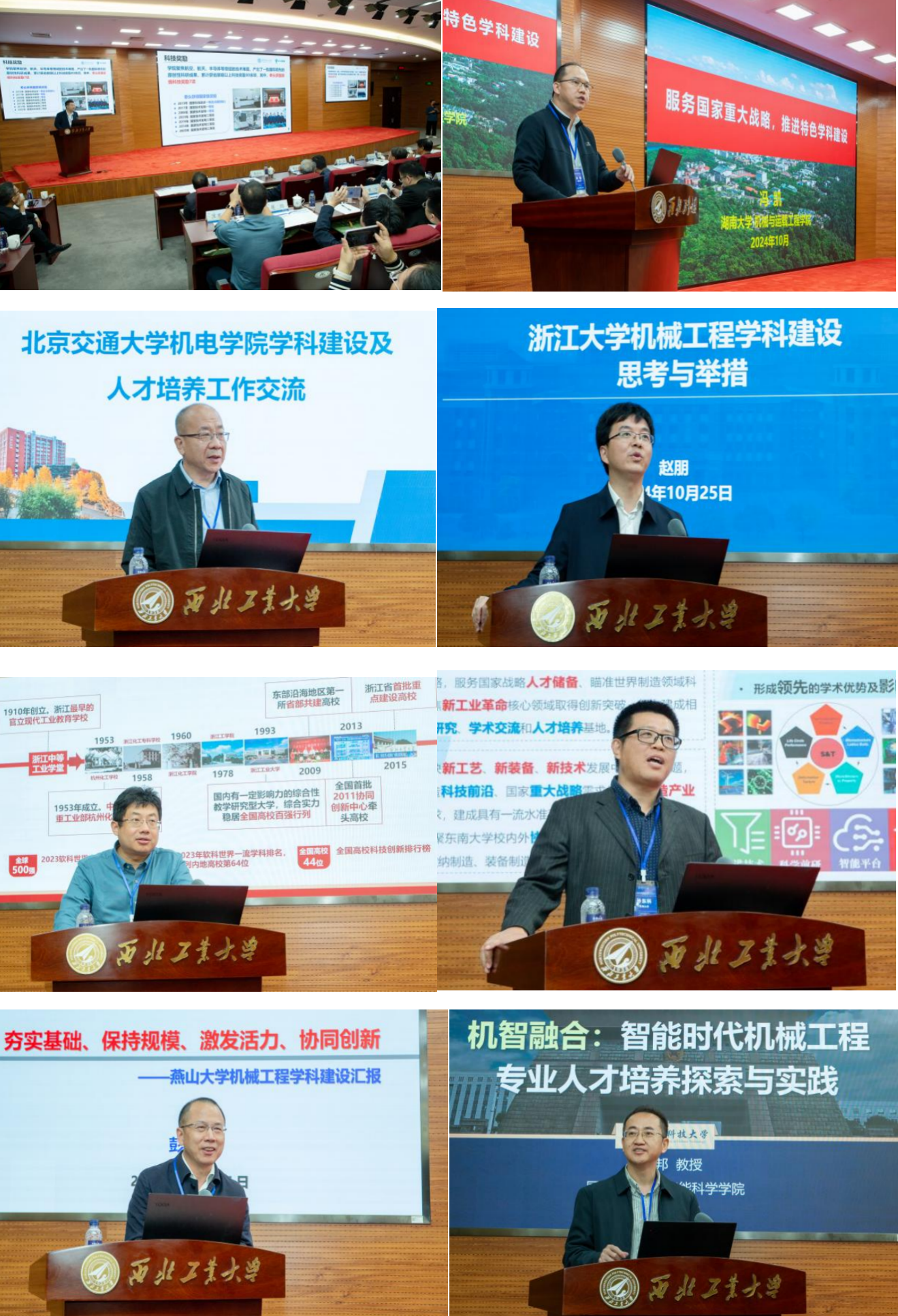 大会分为院长论坛和学术报告两个环节。院长论坛由西北工业大学机电学院党委书记张映锋,副院长罗明、汪焰恩共同主持。华中科技大学、哈尔滨工业大学、上海交通大学、西安交通大学、北京理工大学、大连理工大学、浙江大学、北京航空航天大学、西北工业大学、重庆大学、湖南大学、燕山大学、广东工业大学、中南大学、东南大学、华南理工大学、西安电子科技大学、江苏大学、武汉理工大学、上海大学、浙江工业大学、南京理工大学、北京交通大学、太原理工大学、国防科技大学、浙江理工大学、电子科技大学、四川大学等机械学科负责人,分别围绕学科建设整体情况、学院改革经验、产教融合举措等内容做了分享报告。参会代表们纷纷表示要加强校际间的互学互通互鉴,共同促进机械工程学科发展。