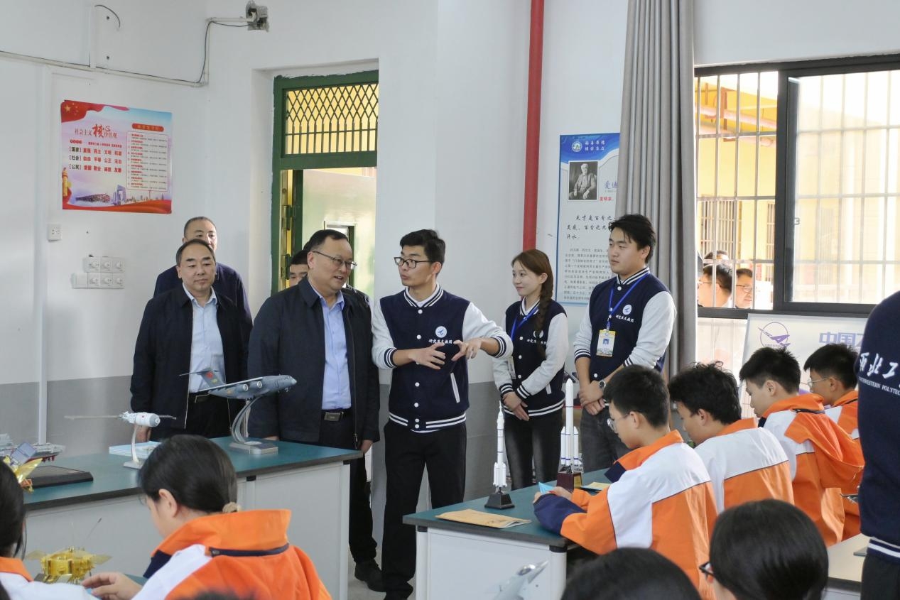 宋保维一行还看望我校研究生支教团志愿者,他详细了解了研究生支教团志愿者的生活和工作情况,并送上慰问品。在融水思源实验学校,宋保维一行考察了我校援建的国防科普教育基地“三航筑梦小屋”和学校心理健康辅导站的建设情况。我校研究生支教团在融水常态化开展“三航”科普课,定期举办三航筑梦科技文化节,深受学生喜爱,受到了社会各界的广泛认可。