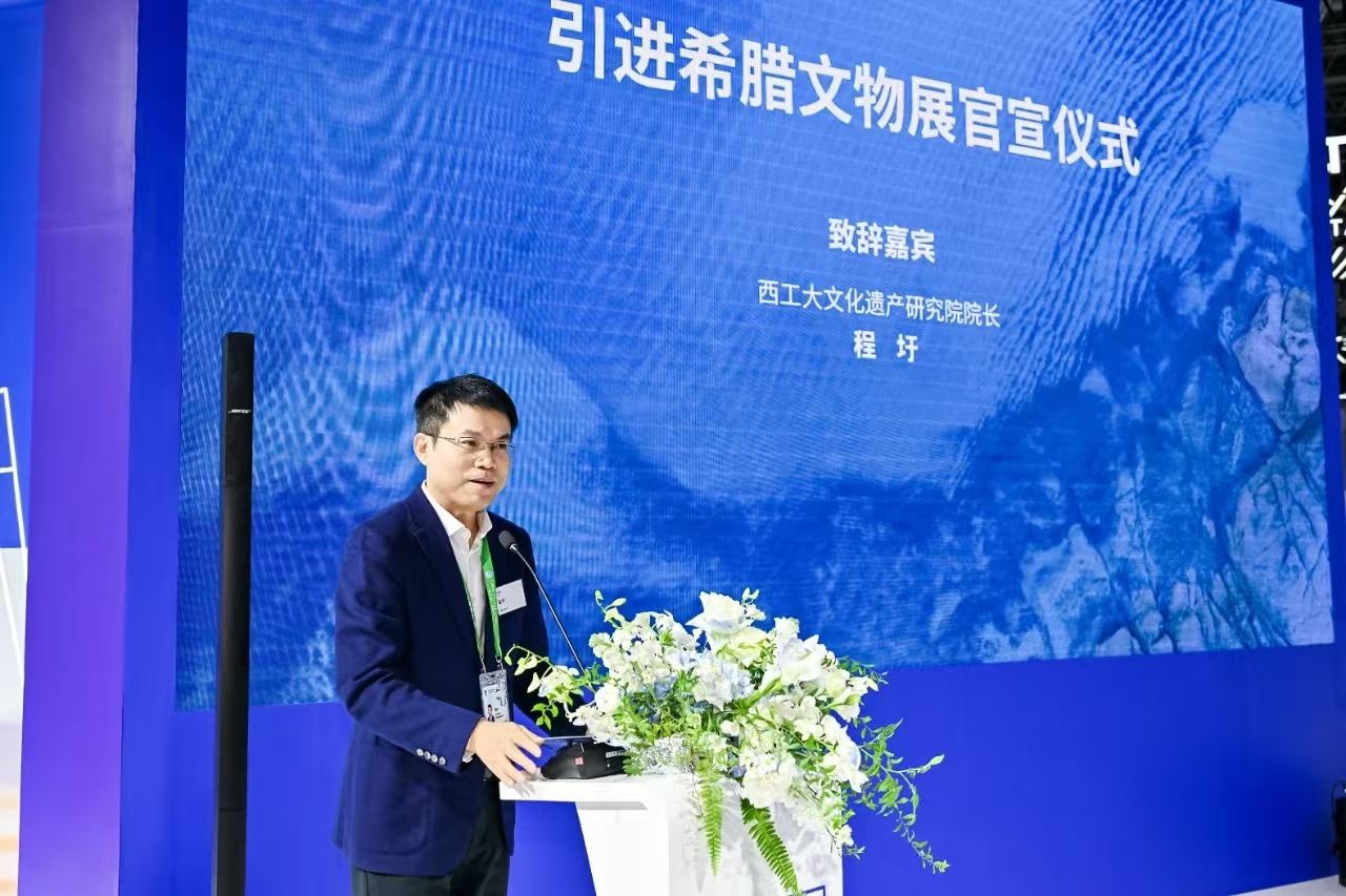 程圩代表西工大致辞,他说,本次展览以希腊考古的时间和空间为脉络,划分不同时期、不同主题来呈现文物背后的古希腊历史文化、科学技术和艺术审美,深度展现古希腊文明进程,让中国大众更多地了解古希腊文明的辉煌灿烂,更深地领悟中华文明的独特魅力。未来,西北工业大学将积极贯彻落实习近平总书记向世界古典学大会致贺信中的指示,积极参与希腊考古发掘和研究项目,通过比较文明研究促进学科建设和教学实践,注重提升我校文物专硕的综合素养与使命担当,为我国文物事业培养具有国际化视野的复合型人才。通过展览策划、学术讲座、博物馆教育等多样化形式,推动中希两国在考古研究和文化交流等方面的深化合作,为推动文明传承发展,加强国际人文交流,促进全球文明对话贡献力量。