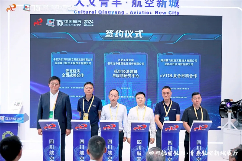 校友吴峻峰,四川巽飞航空工程技术有限公司总经理,代表公司与中发天信(四川)航空科技股份有限公司签订“共建低空经济全面战略合作”协议,并与成都兴纤合科技有限公司签订“eVTOL复合材料合作”协议。同时,四川成都青羊经济开发区还分别同四川巽飞航空工程技术有限公司等企业就“青羊区‘文鳐’eVTOL研制项目”等签订政企投资协议。