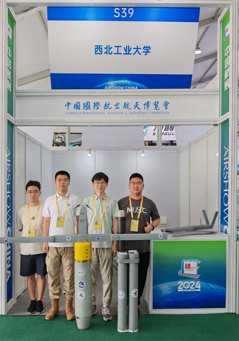 西北工业大学展台展出的是学校无人系统技术研究院昌敏教授项目组自主研制的一款跨海空变体管射折叠翼无人机--“游隼”。