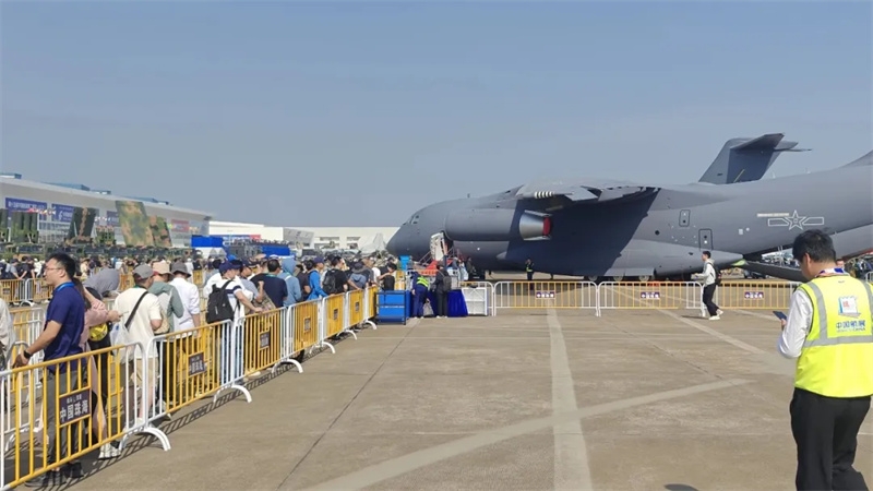 本次航展,首次开放展示运-20飞机货舱,为大家提供“零距离”感受接触空军“战略重器”的机会。运-20总师唐长红,甚至当起了“导游”,他提醒大家:“走进‘胖妞’别忘了看地板和机身有多少门道”。