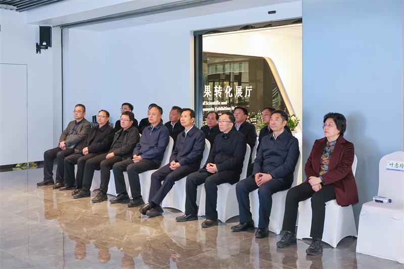 江凌一行参观了学校科技成果转化展厅,听取学校科技成果转化相关工作汇报,详细了解了学校成果转化企业发展历程、科技研发及产品应用等情况。