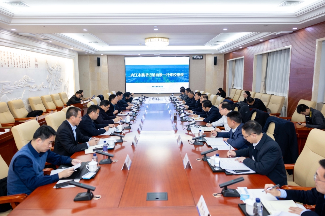 12月2日下午,内江市委书记邹自景一行来校调研。我校党委书记李言荣参加座谈交流。内江市委常委、组织部部长向赟,副市长毕胜参加调研。座谈会由副校长张开富主持。