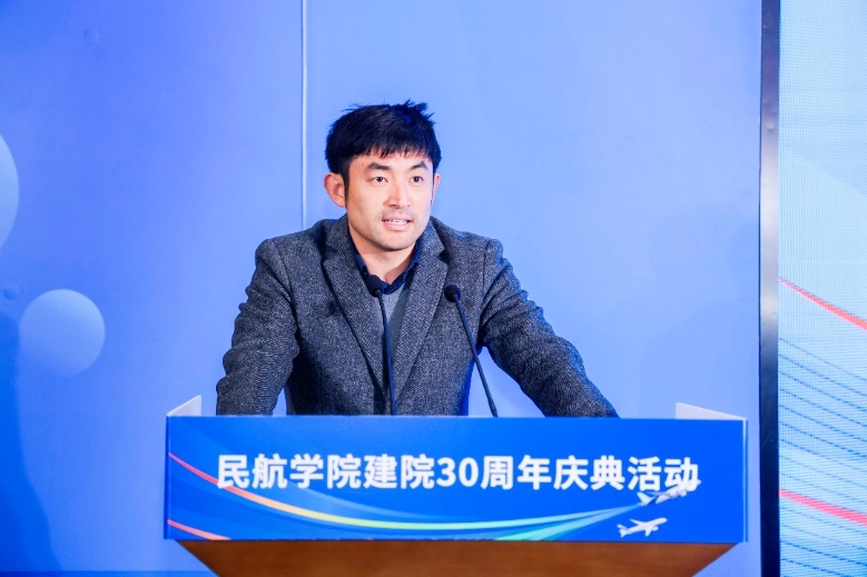 原民航工程学院94届毕业生、德事隆中国区副总裁张传勇代表广大校友发言。张传勇深情回顾在民航学院求学岁月中的点点滴滴,并激励师弟师妹爱国奉献、勇担使命,努力成为有理想、敢担当、能吃苦、肯奋斗的新时代好青年,在民航强国建设的道路上不懈奋斗。