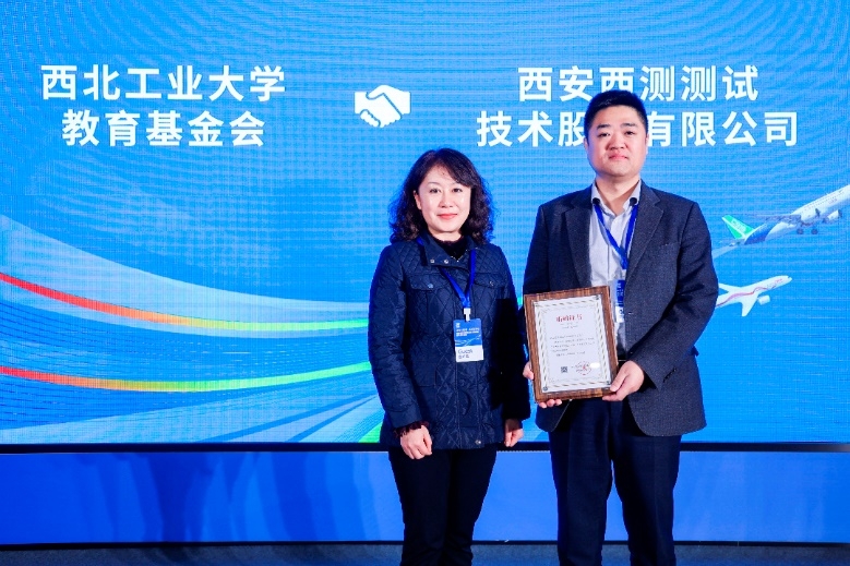 值此之际,徐伟侠代表西北工业大学教育基金会为西安西测测试技术股份有限公司董事长李泽新颁发奖学金捐赠证书,感谢其对于民航学院学生创新创业、红色爱国教育以及国防实践锻炼的支持。