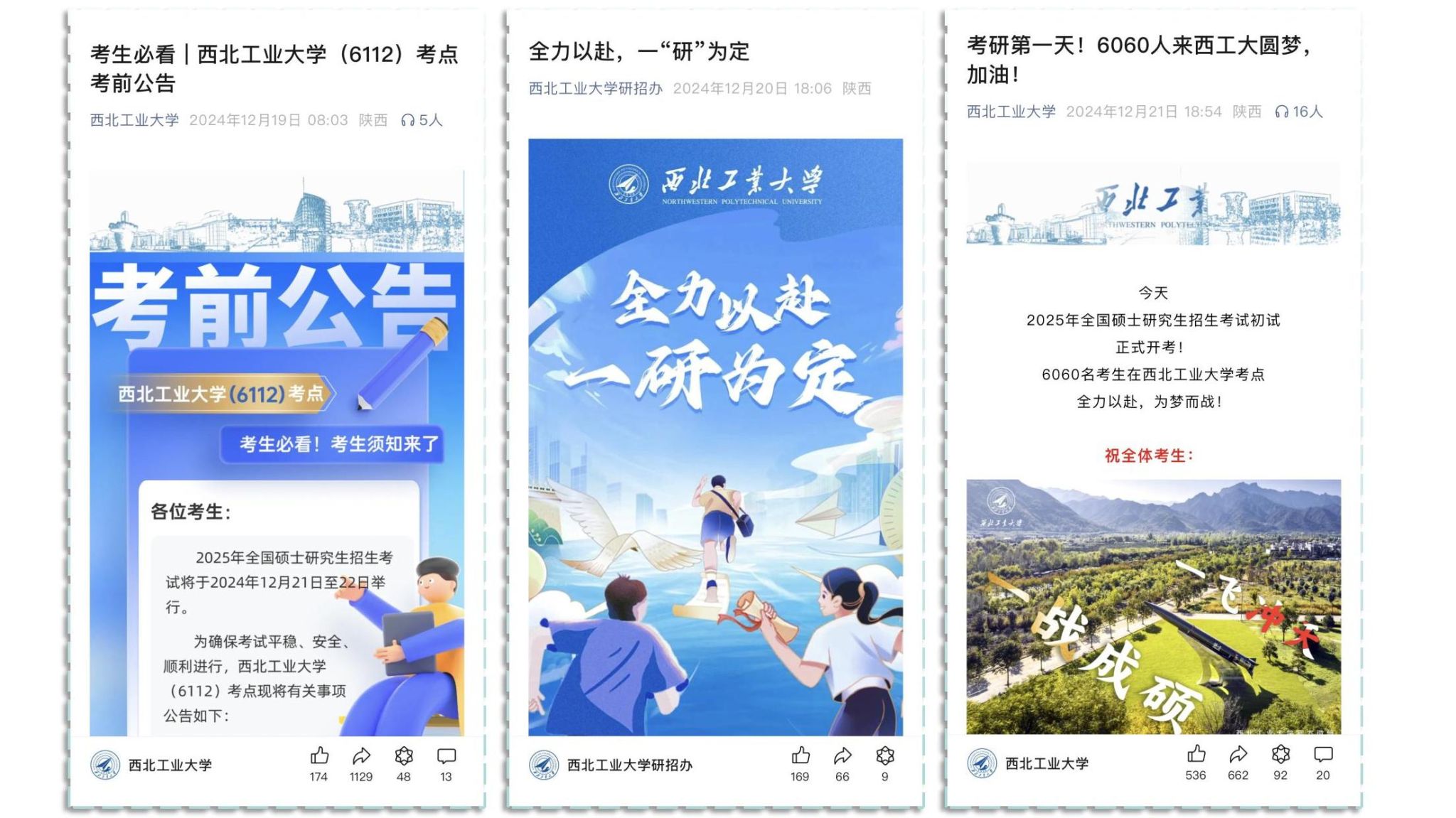 学校坚持以考生为本的服务理念,不断提升服务考生质量。在学校主页、研招网和官微等平台发布考点公告、考场规则、交通餐饮等考试服务信息,尽可能为考生提供合理便利。及时发布“自命题科目答题纸条形码粘贴说明”“考场路线指引”“安检须知”等视频,更为直观地为考生展示应考要求。在校园各个入口设置到达考场的路牌、指示牌,提前一天安排考生熟悉考点环境等,共同营造良好考试氛围。