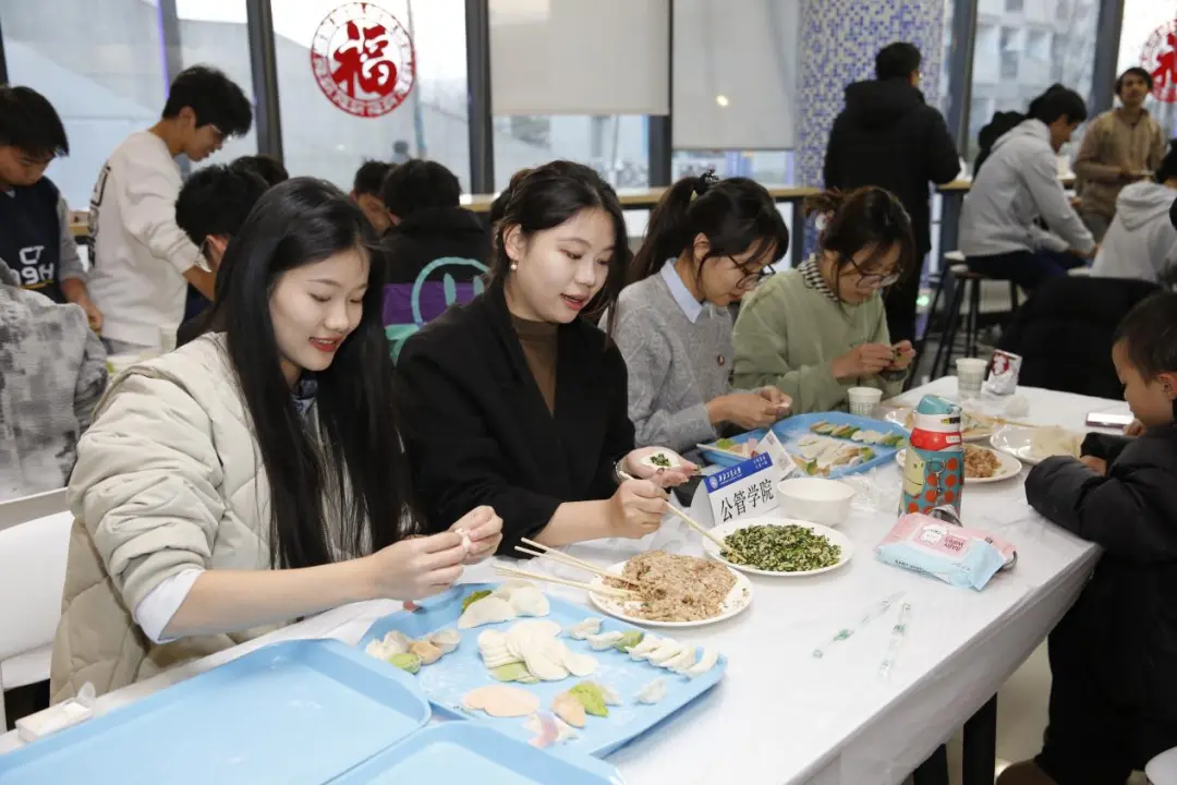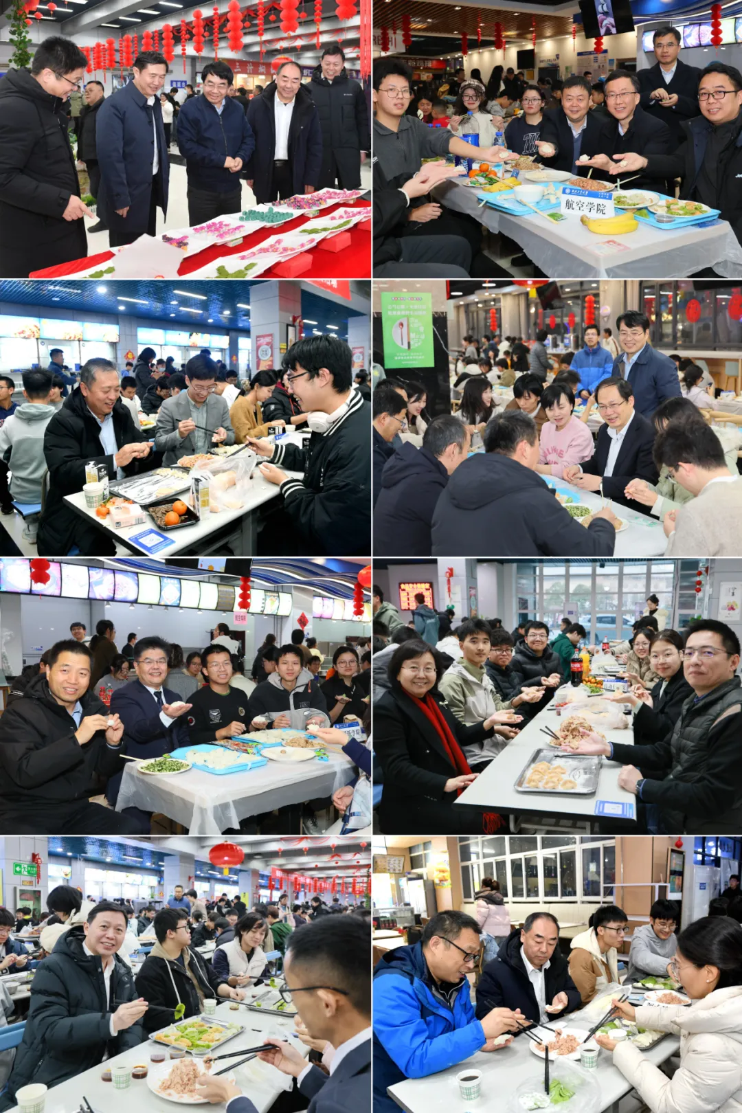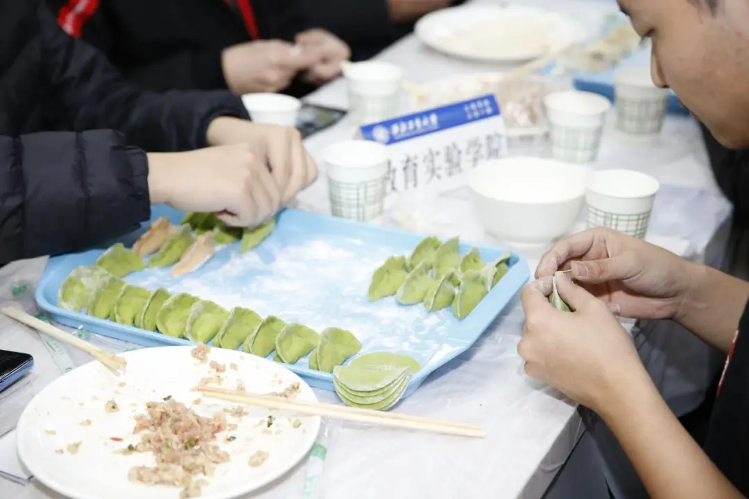 晚会开始前,各培养单位组织同学们一起包饺子、吃团圆饭,李言荣、宋保维等校领导来到现场参与活动,和同学们亲切交谈,餐厅中一片温暖祥和的新年氛围。