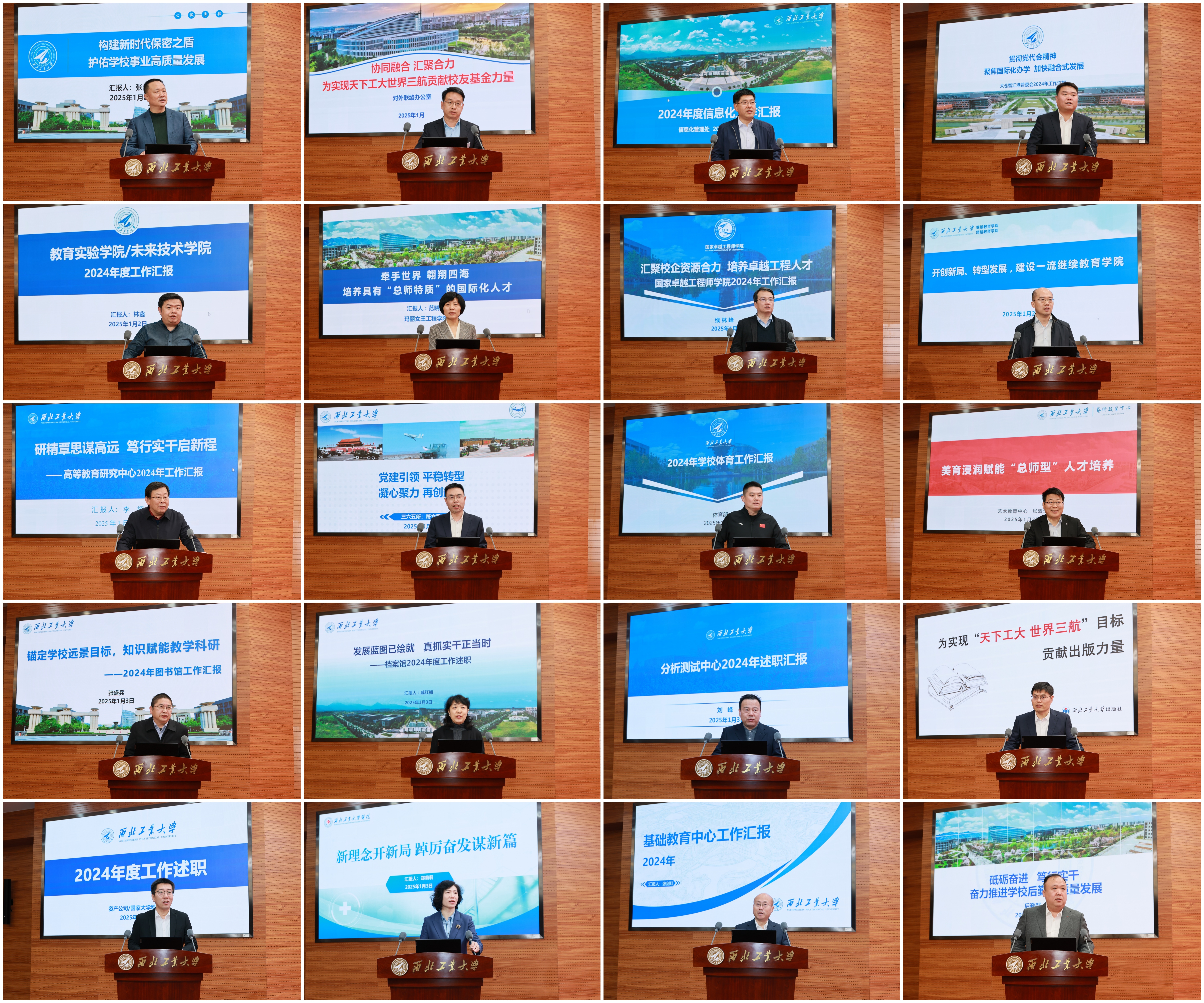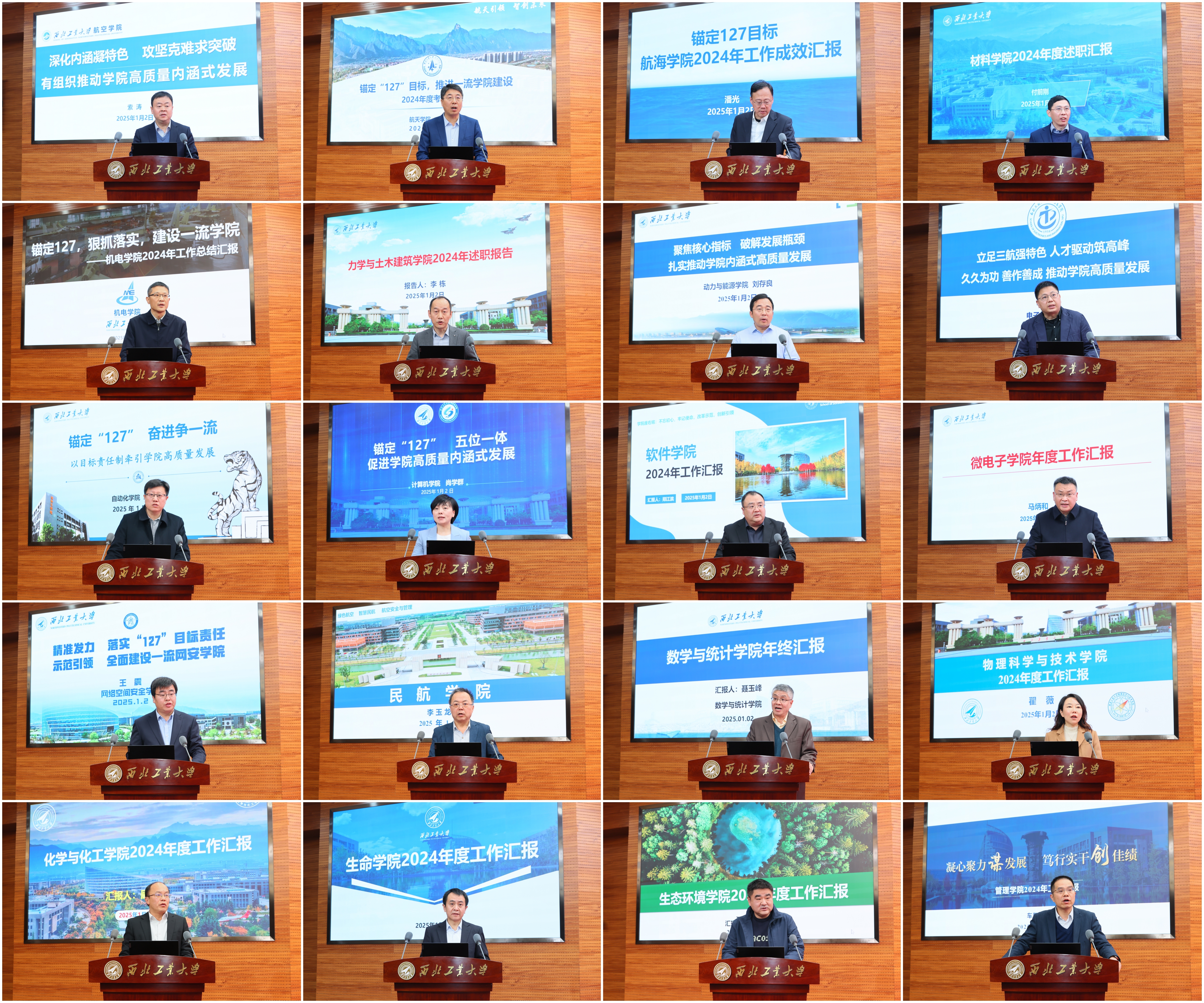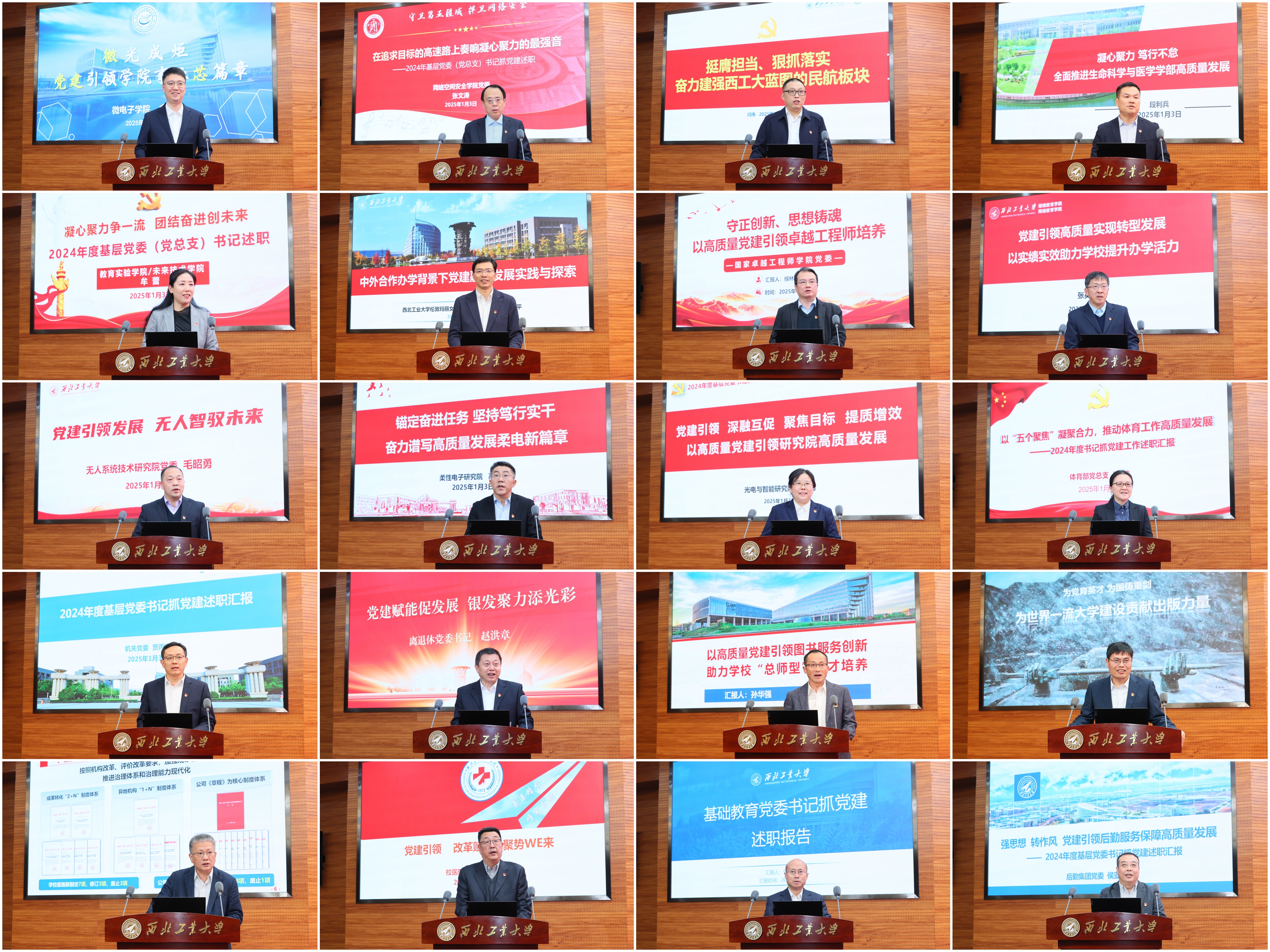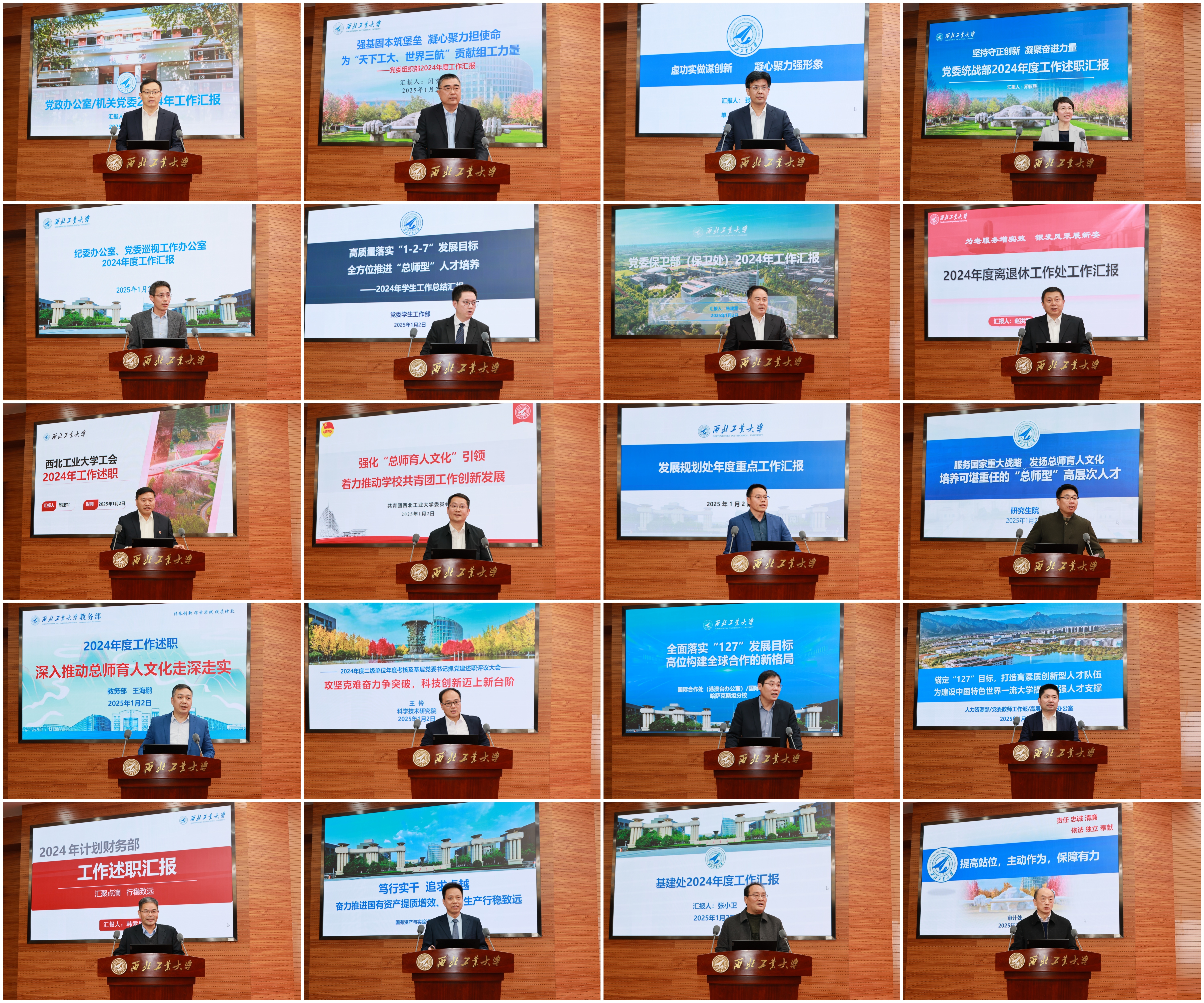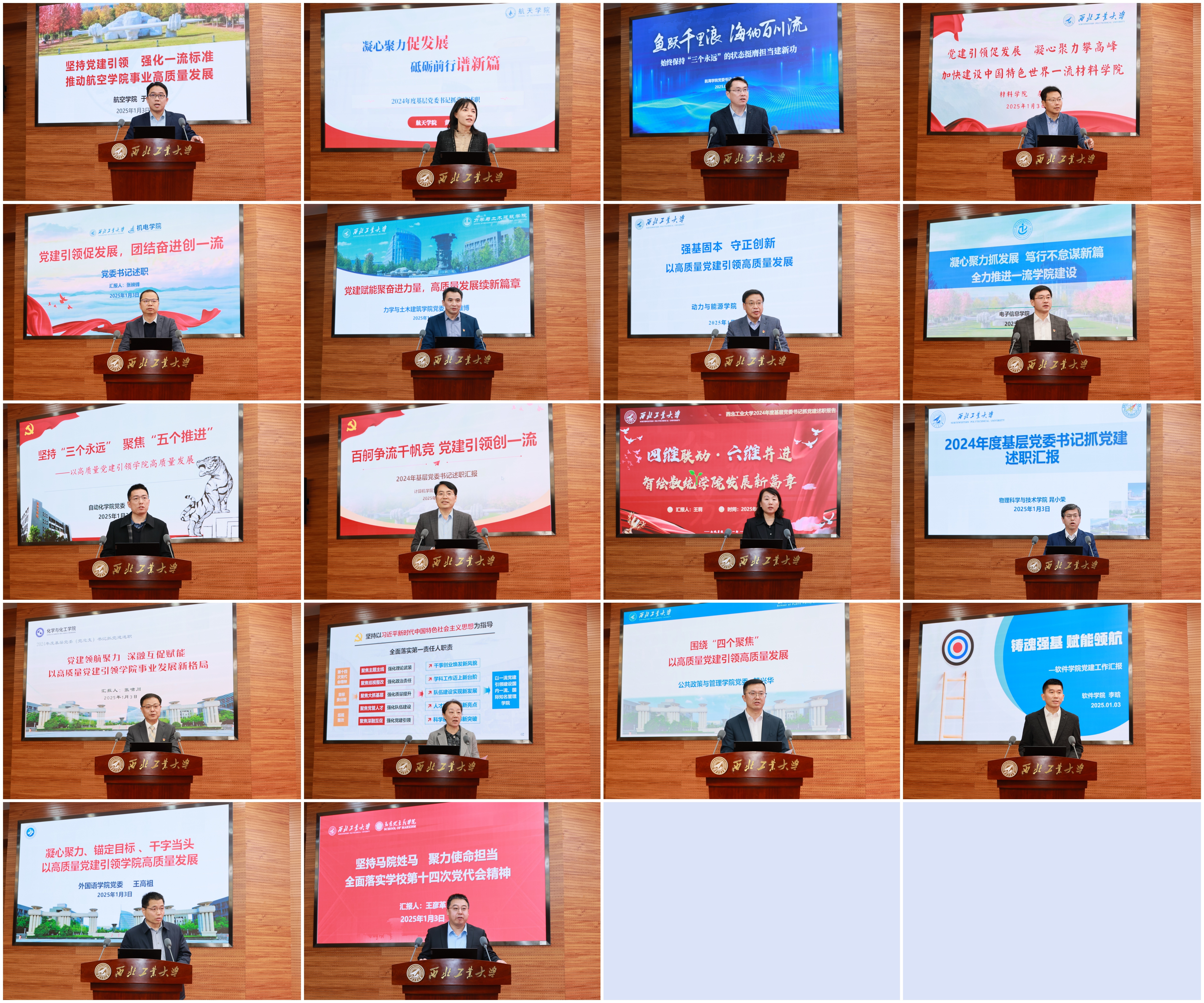 校内69个二级单位负责人和38位基层党委书记依次述职。各二级单位重点围绕目标责任制核心指标完成情况,重点从学科建设、人才培养、科学研究、师资队伍、国际交流等方面取得的成果以及事业发展情况、特色亮点,下一步努力方向进行述职。各基层党委书记重点围绕加强政治建设和作风建设、年度重点工作完成情况等方面进行述职。大家一致认为,2024年学校高水平召开第十四次党代会,确立了“天下工大、世界三航”远景目标和新“三步走”战略构想,聚势谋远、定向引航,全校上下“追求一流、追求卓越”的干事创业氛围浓厚,一年来学校各项事业发展取得了显著成效。大家纷纷表示,2025年将坚持永远在一线、永远在状态、永远在前列,为党育英才、为国铸重剑,奋力谱写中国特色世界一流大学建设新篇章,为强国建设、民族复兴作出新的更大的贡献!