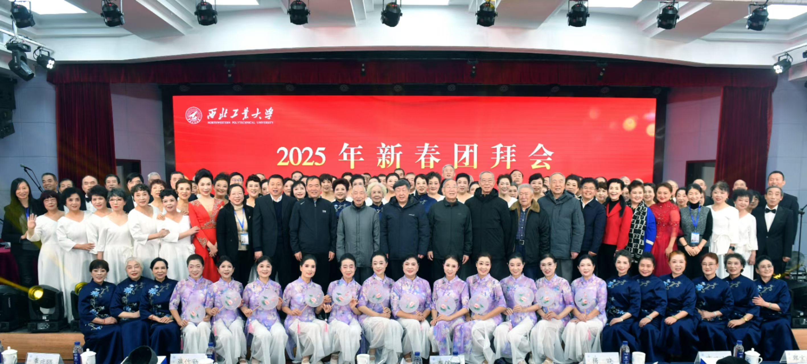 红枫叶艺术团与艺术教育中心的老师们在团拜会上表演了器乐合奏、情景朗诵、独唱、舞蹈、合唱等节目,展现了西工大老同志“老有所乐、老有所为、积极向上”的精神面貌,现场气氛欢乐祥和。