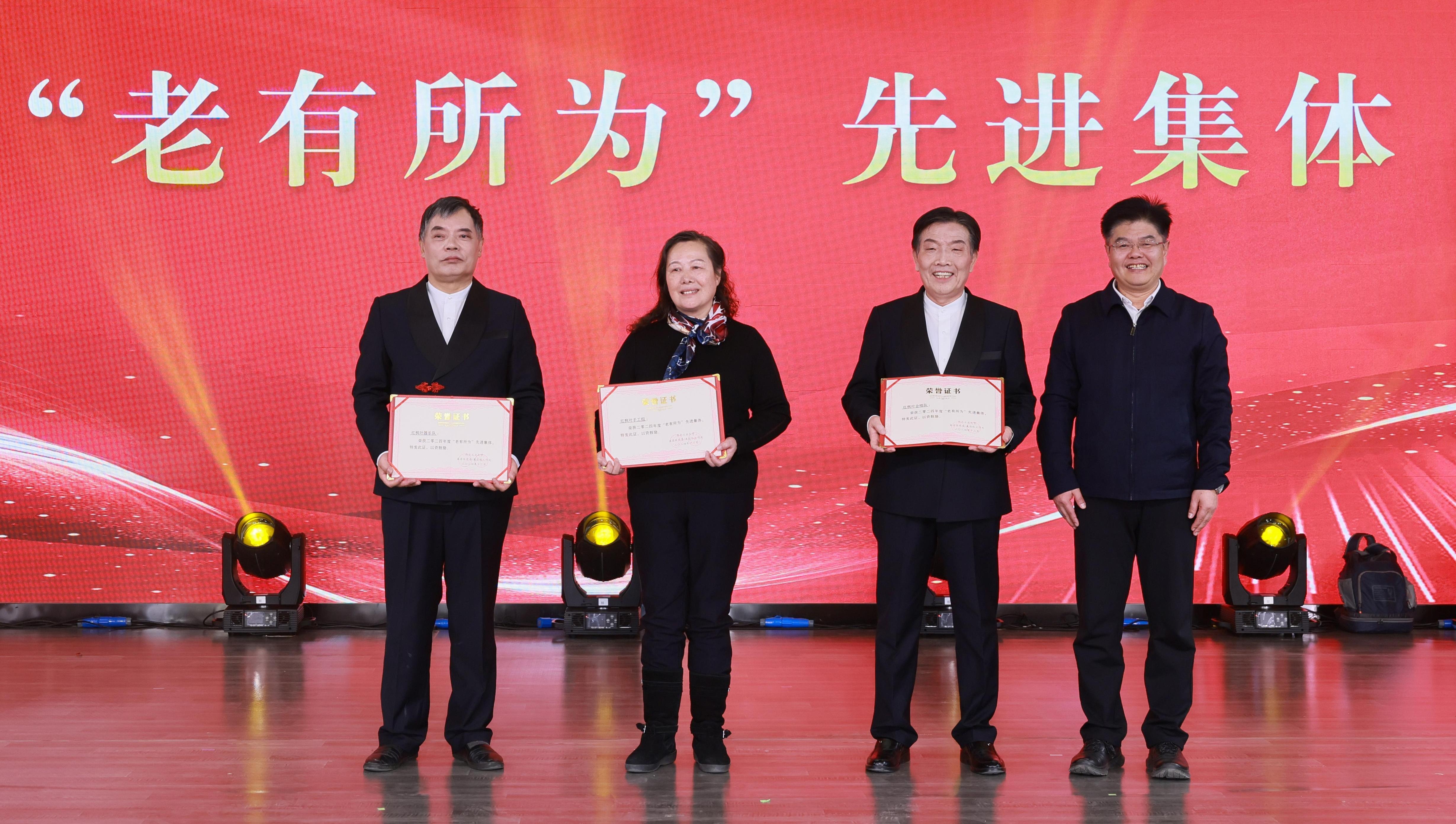 在随后举行的新春团拜会上,杨晓为“老有所为”先进集体颁奖,李保义为“老年之星”先进个人颁奖,杨晓与李保义共同为“最美五老”先进个人颁奖。