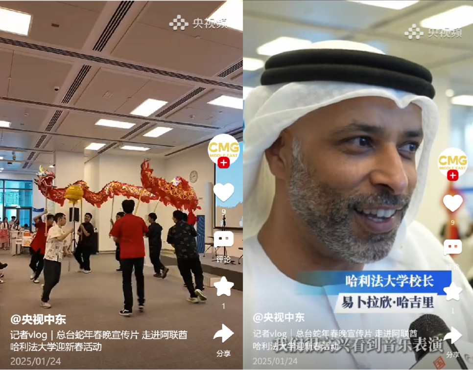 在阿联酋哈利法大学,教育实验学院/未来技术学院学生聆听了能源、环境、信息等专题报告,探访了先进电力与能源中心等实验室、阿布扎比国家石油公司等企业。在当地迎新春活动中,学生们的舞龙表演、民族舞蹈等展示了我校青年学子的精神风貌,相关活动被央视频报道。