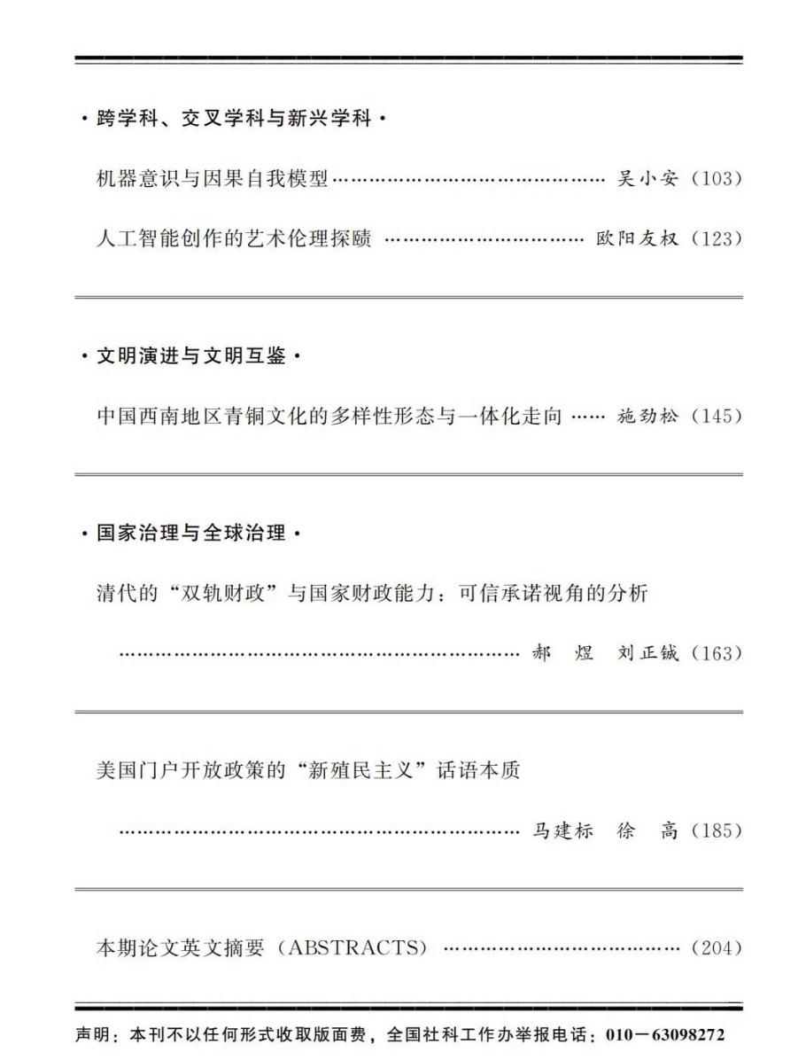 我校马克思主义学院吴小安副教授在《中国社会科学》2025年第9期发表题为《机器意识与因果自我模型》的学术论文。西北工业大学马克思主义学院是该论文的第一完成单位,吴小安副教授是该论文的唯一作者。