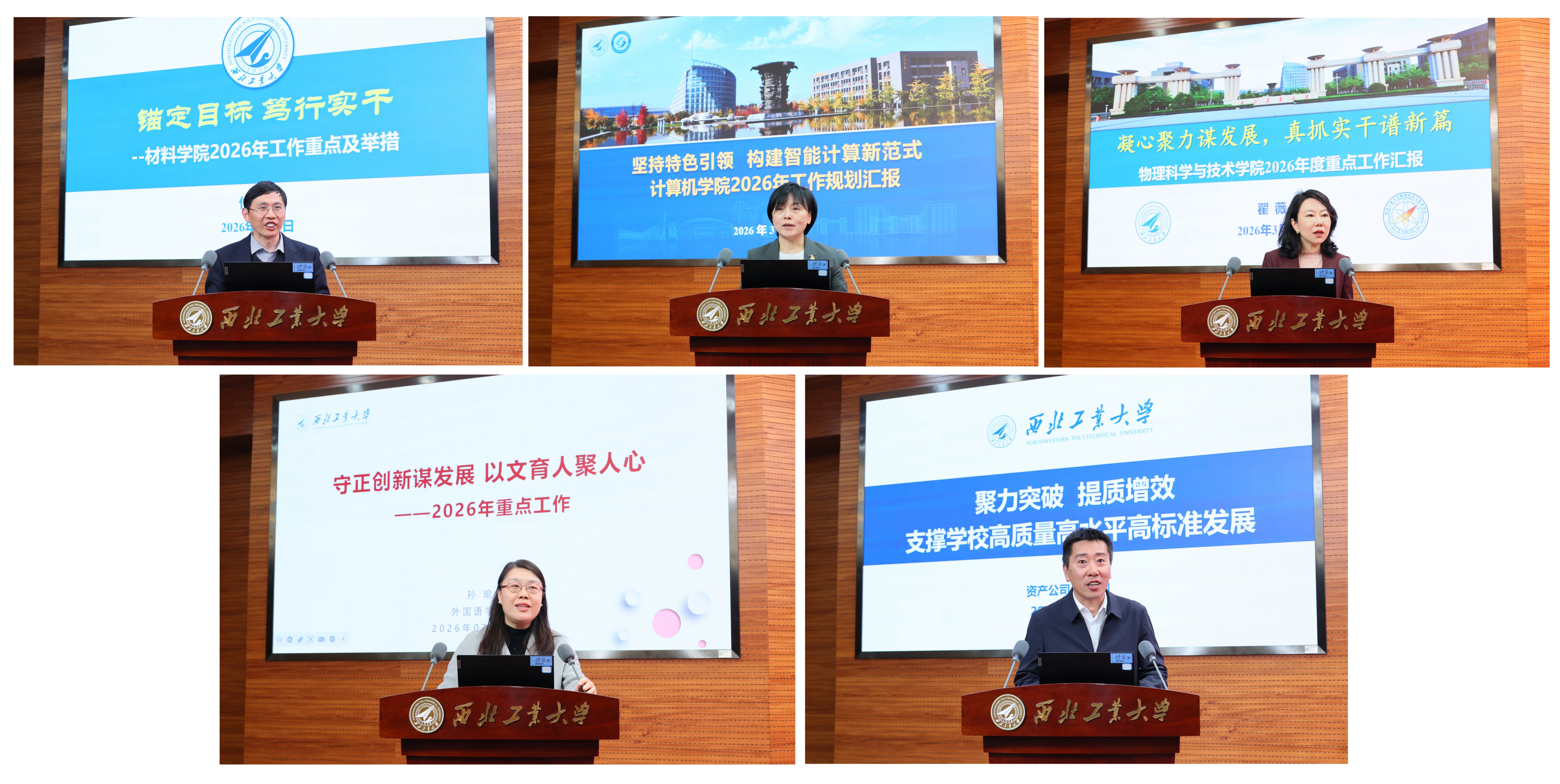 材料学院院长付前刚、计算机学院院长尚学群、物理科学与技术学院院长翟薇、外国语学院院长孙瑜、资产公司总经理沙治邦等五位同志结合各自单位实际,围绕学校2026年重点工作和本单位“十五五”规划,汇报交流了工作思路和目标举措。大家一致表示,将继续以昂扬向上的精神风貌、挺膺担当的奋斗姿态、狠抓落实的信心决心,锚定“一十百千”发展目标和“天下工大、世界三航”远景目标,把会议精神转化为具体施工图和攻坚时间表,为学校高质量发展贡献智慧力量。