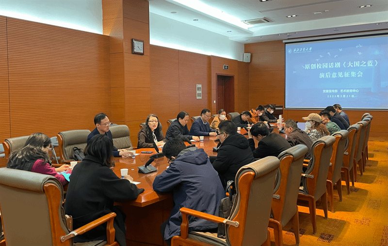 为进一步提升剧目质量,试演结束后召开了意见征集会,副校长宋保维、副校长杨益新、部分基层党委(党总支)书记、学校美育工作委员会成员单位相关负责人、主创团队及师生代表参加会议。艺术教育中心主任孙瑜介绍剧目建设情况,与会代表对剧目提出意见建议。