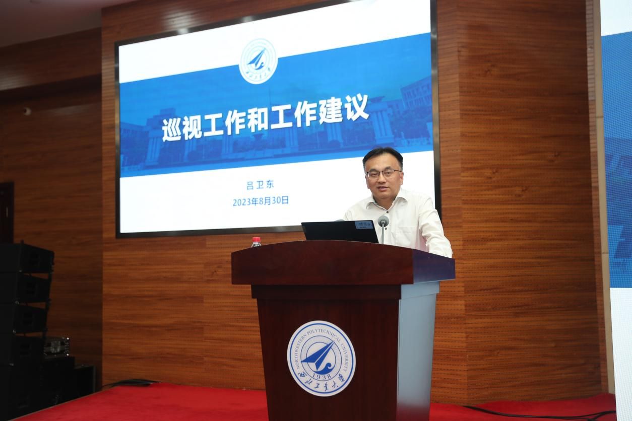 同时,他还就科研、教学、学科以及党建等重点工作提出了要求:科研工作要在“信息赋能、融合强校”上下功夫。重点培育国家战略科技力量,聚焦最尖端、最前沿、最急需的方向,抓好大团队和大平台建设,团队和平台是西工大这种工科学校最鲜明的底色和可持续发展最重要的家底,要结合各学院实际大力推动“从1到100快速跑,从0到1自由跑,从1到0慢步跑、回头跑”。要以“总师育人文化”牵引带动学校人才培养工作。以“总师育人文化”引领课程体系建设、卓越工程师计划、思政课程建设等人才培养体系的改革,教育引导各类学生都成为优秀人才、成为时代新人。要加快构建与世界一流大学目标相适应的特色学科体系。继续巩固发扬西工大“三航”特色,培育壮大高峰学科,做多做厚高原学科;要给学科建设加装“红绿灯”,发展好的学科“绿灯先行”,需要加油的学科“黄灯提醒”,亮红灯的学科就应考虑关停并转。要坚持党建引领,推动党建与事业融合发展。党旗要插在人才培养和科学研究最前沿、最基层,党员的先进性、优秀党员的示范作用要体现在教学科研、后勤保障的最前沿、最基层。要把主题教育取得的成果转化为学校发展动力,进一步加强基层党建工作、干部队伍建设、党风廉政建设等,确保校园安全稳定。