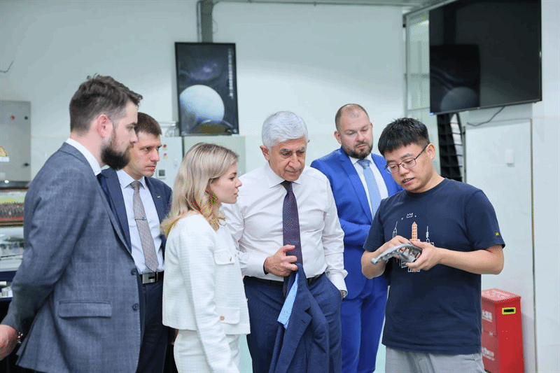 座谈会前,米哈伊尔·波戈相一行还参观了航空学院、机电学院相关实验室及我校科技成果转化展厅。