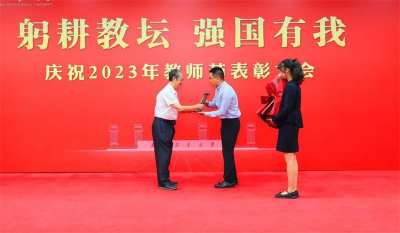 党委常务副书记程基伟为获得国家级教学名师、2023年全国高校黄大年式教师团队、2023年全国五一劳动奖章获得者、第27届中国青年五四奖章集体奖、全国高校教师教学创新大赛奖的教师代表颁奖。