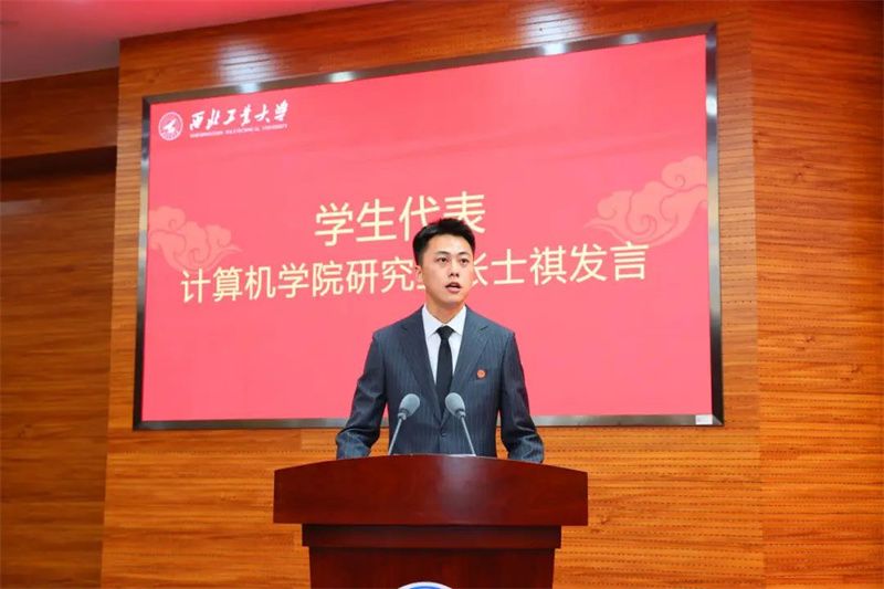 “感恩每一位在面对困惑时给予我们帮助的老师,引领我们找到了青春方向,坚定了人生目标”,学生代表、计算机学院研究生张士祺说道。他坚定地表示,定将铭记师长教诲,脚踏实地,未来在各领域各方面工作中争当排头兵和生力军,展现西工大人的青春朝气。