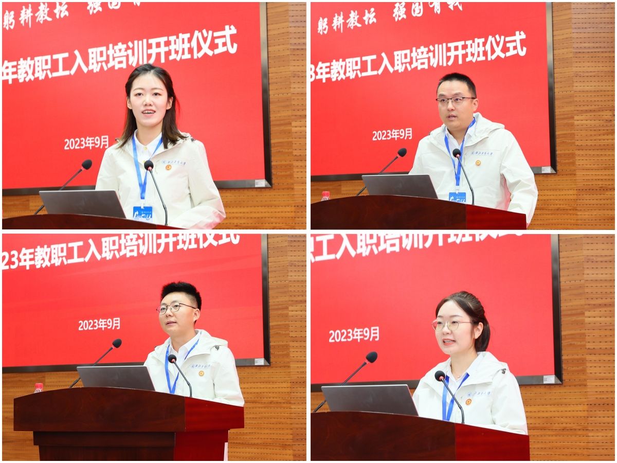 航天学院准聘副教授安琪儿、机电学院教授叶涛、校医院副主任医师赵强、学校办公室李佳佳等四位参训教职工代表做了交流发言,分享了入职以来的思考、感受和工作情况,表达了要立足岗位、努力为学校各项事业发展贡献力量的坚定决心。