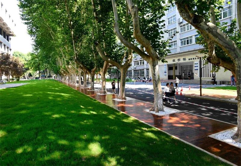 梧桐大道两侧还专门规划有非机动车停放处,方便师生的同时,校园也更整洁。