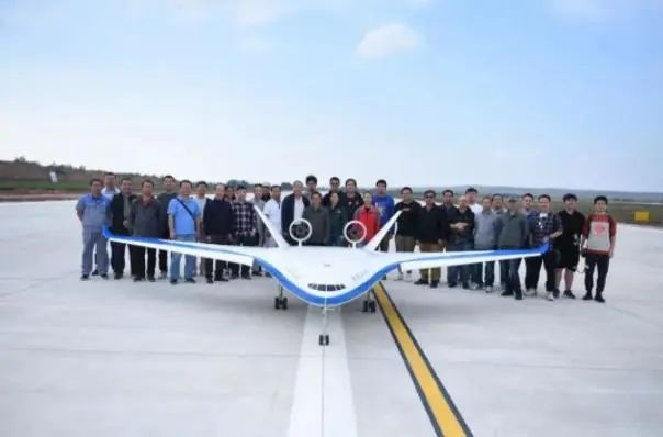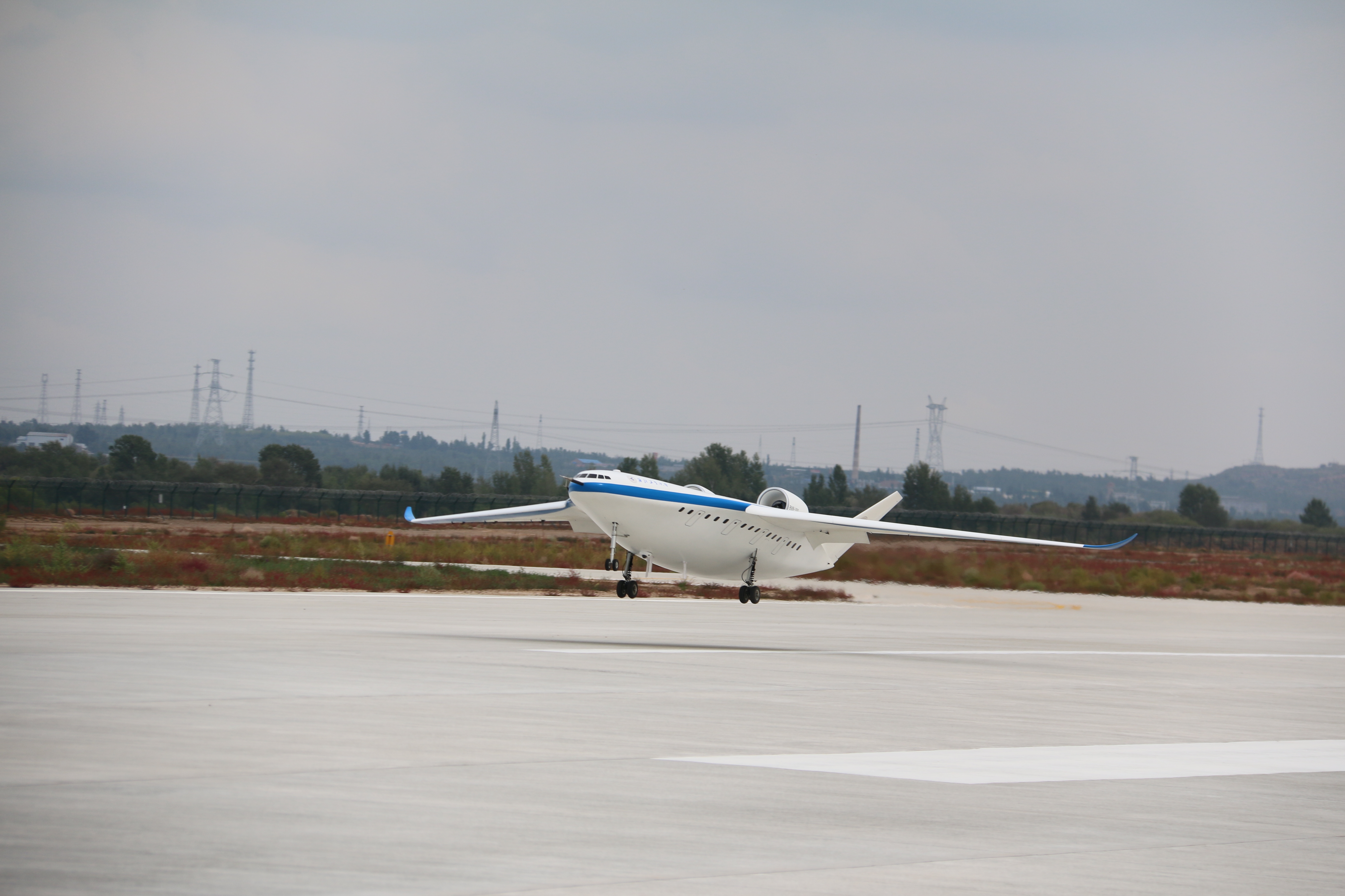 我校研制的翼身融合大型客机的缩比试验机在靖边通用机场试飞成功