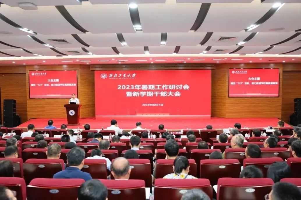 学校提出近期发展的“127”目标及落实举措。党委书记李言荣以《强国复兴与我校一流大学建设》为题讲授专题党课,围绕学校发展主要竞争性指标提出近期发展的“127”建设目标;校长宋保维以《坚持教育、科技、人才“三位一体” 加快推进我校世界一流大学建设》为题讲授专题党课,提出学校下一步发展“127”落实举措——1个引领、2大改革、7个主要方面。暑期工作研讨会上,学校党委围绕“127”目标、举措部署各项重点工作任务,激发了全体西工大人的干事热情,全校上下“追求一流、追求卓越”的干事创业氛围浓厚。