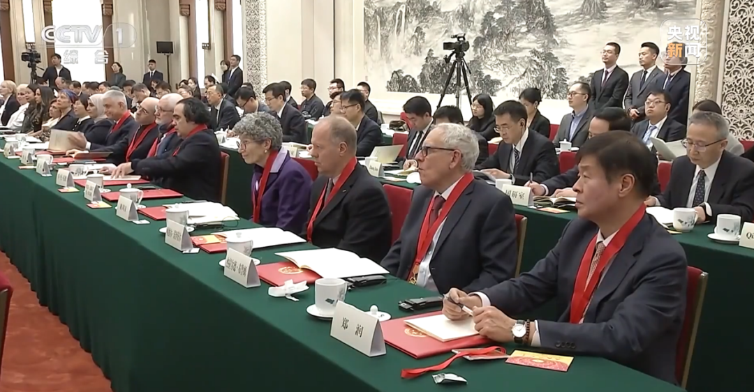 帕维尔·诺伊茨尔教授(第三排左八)在人民大会堂会见现场(央视新闻视频截图)
