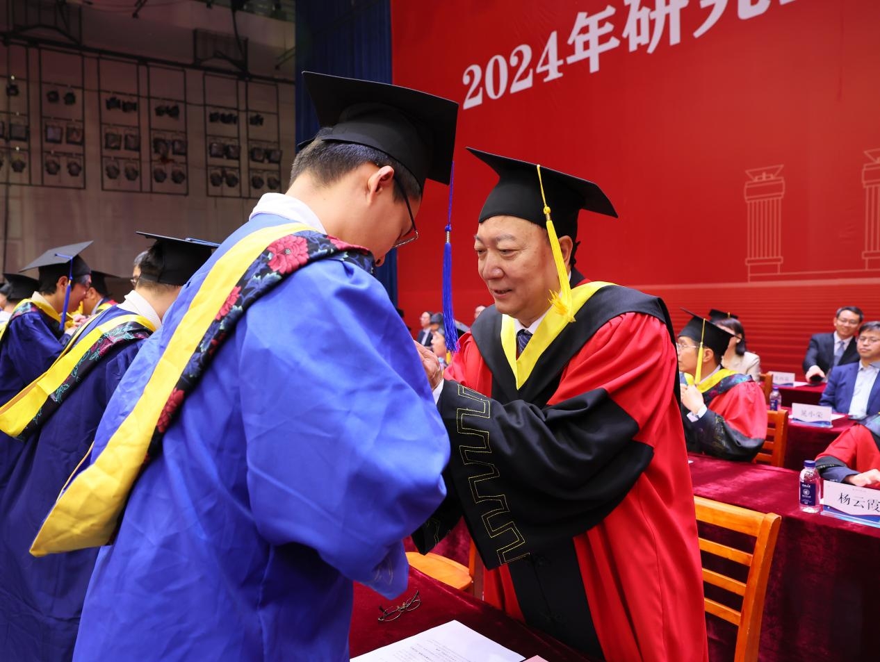 校党委副书记、副校长詹浩宣读《关于表彰2024年研究生“优秀毕业生”的决定》,今年,学校授予王正虎等884名研究生“优秀毕业生”荣誉称号,并予以表彰。