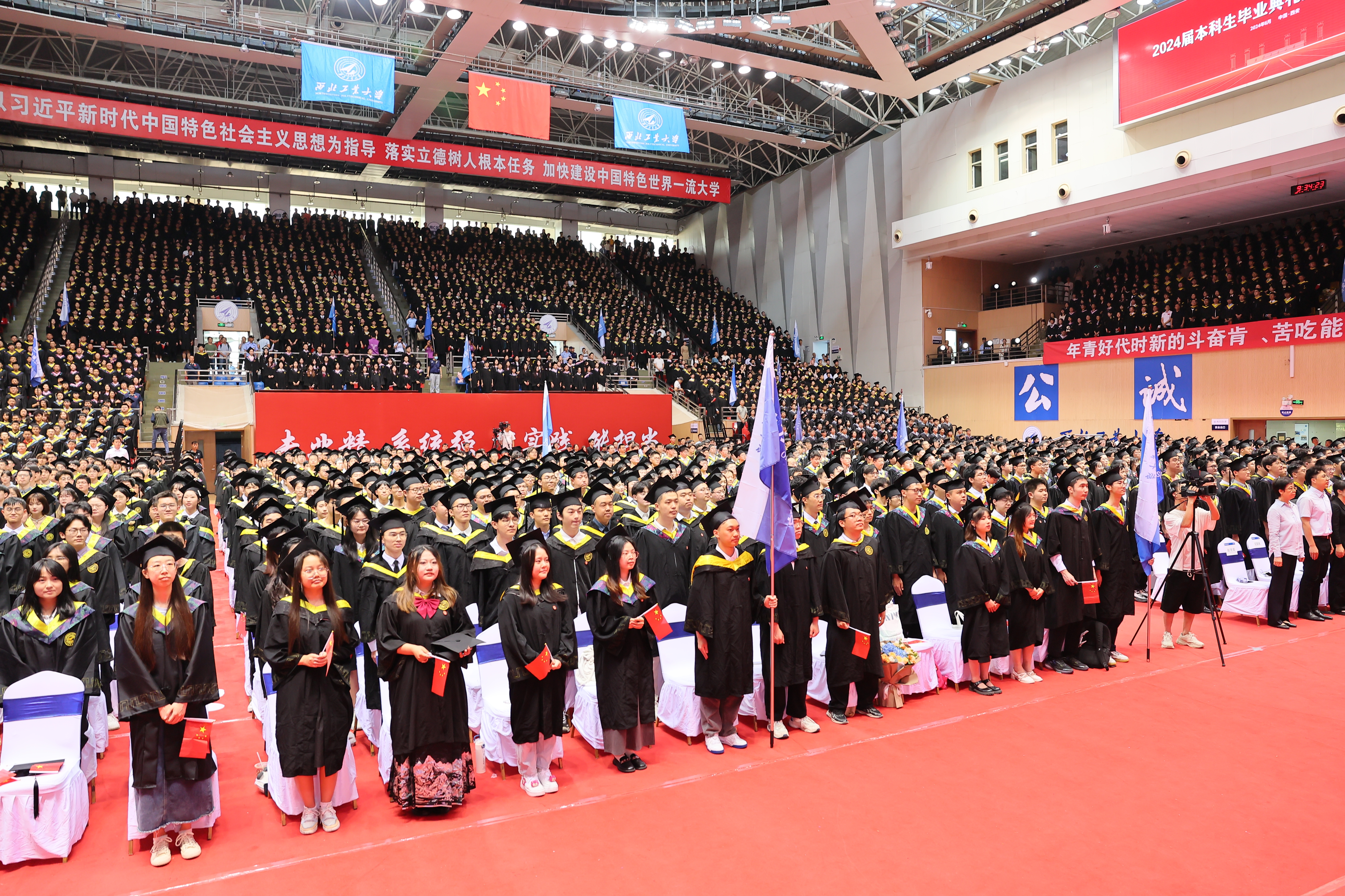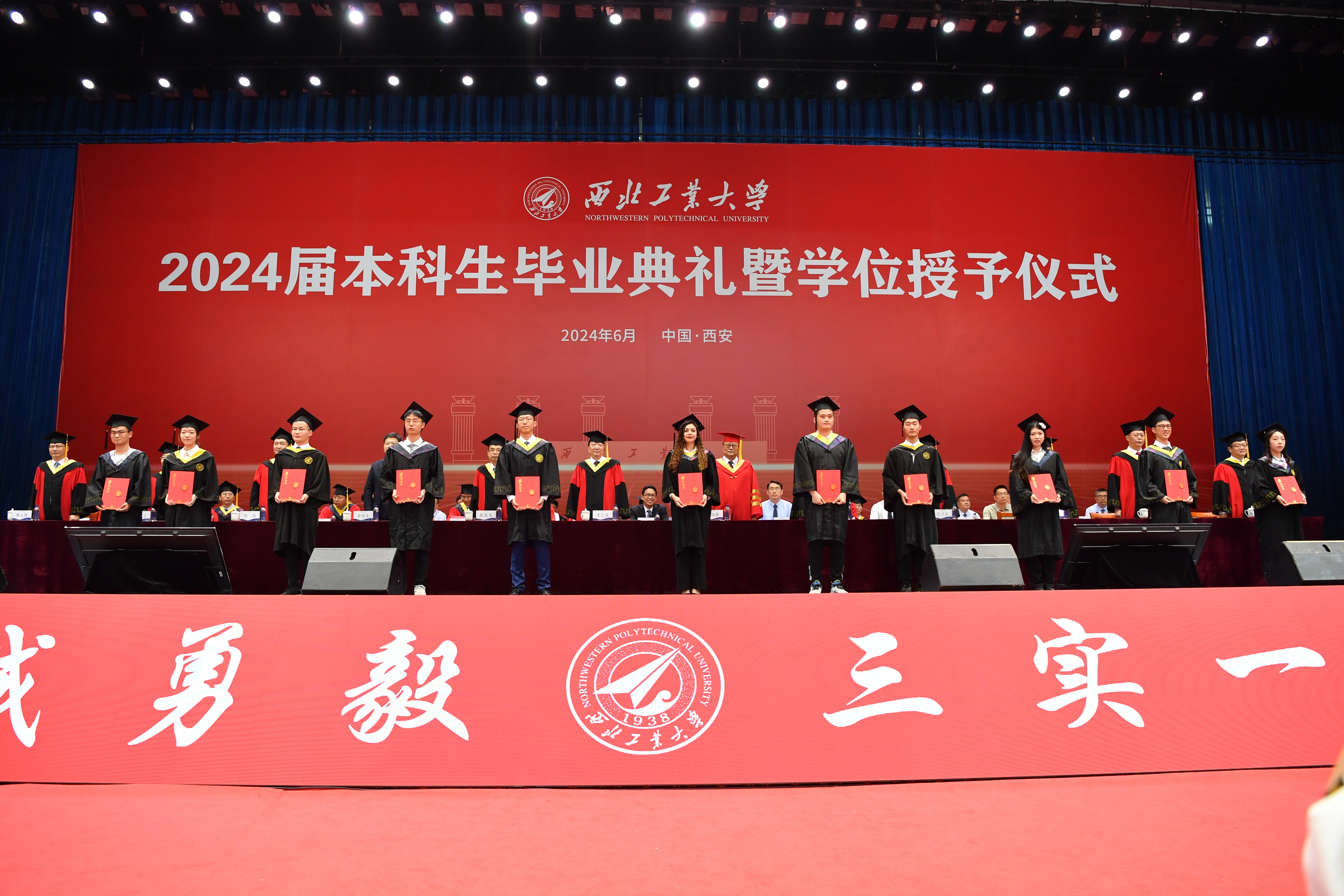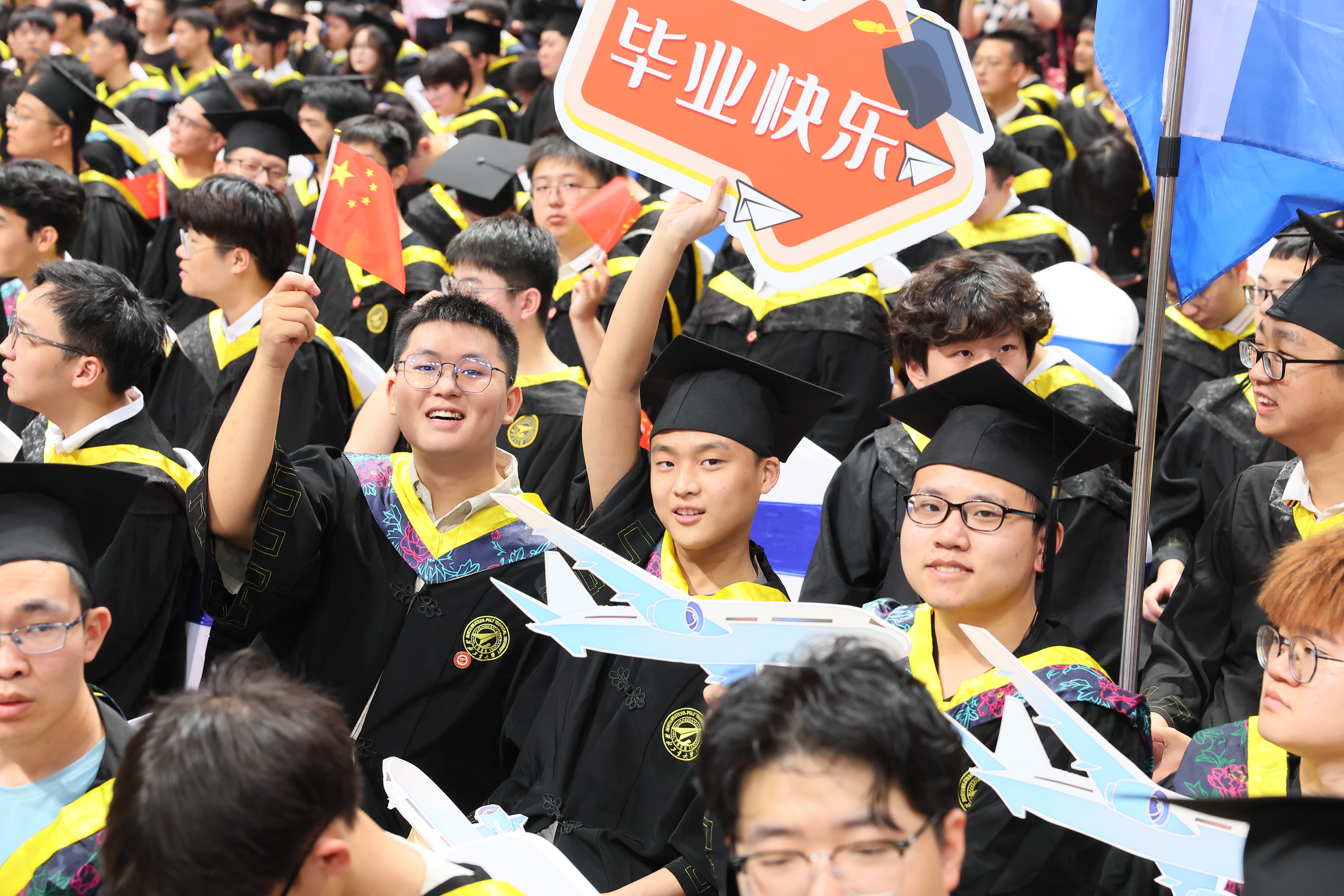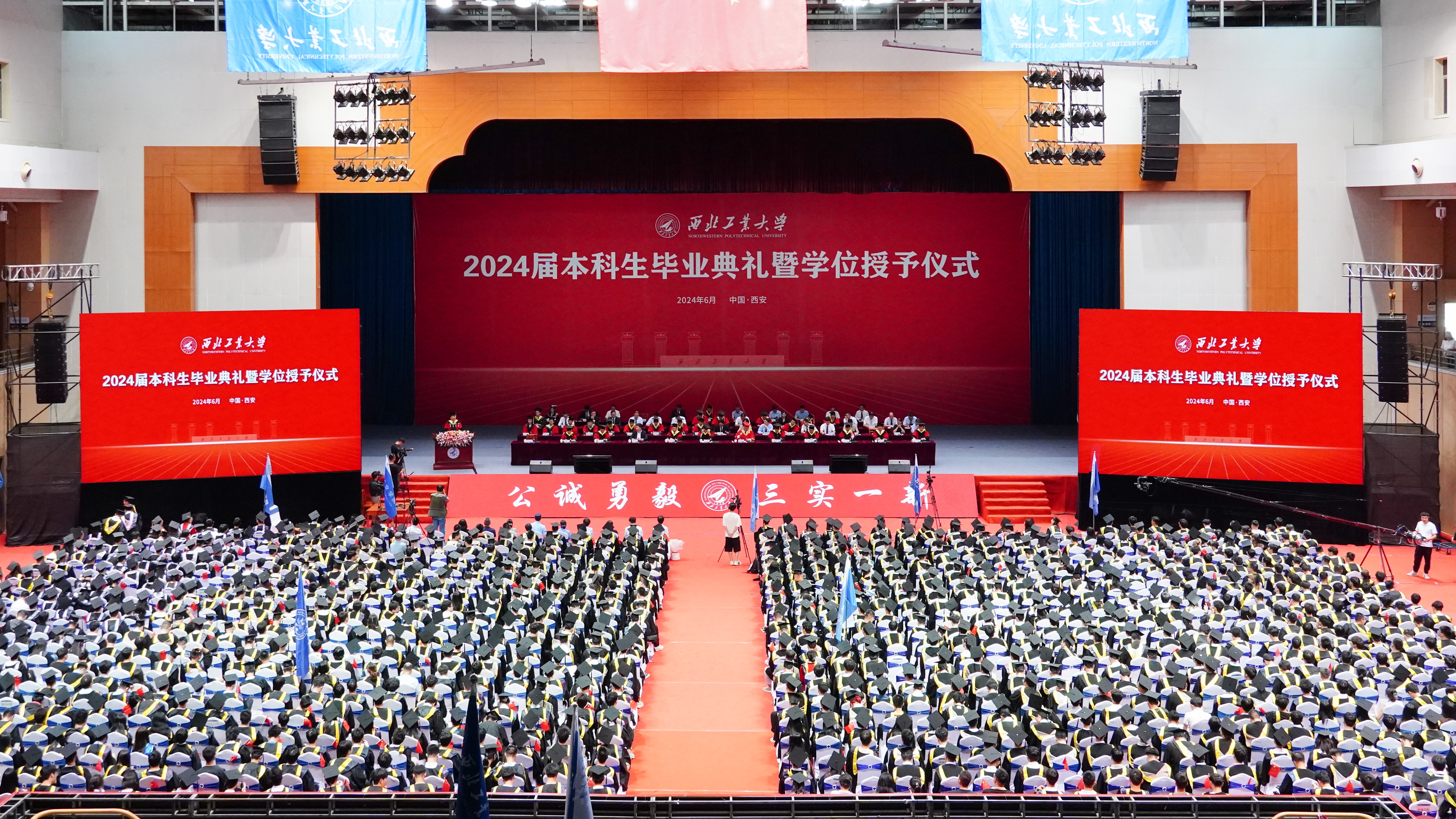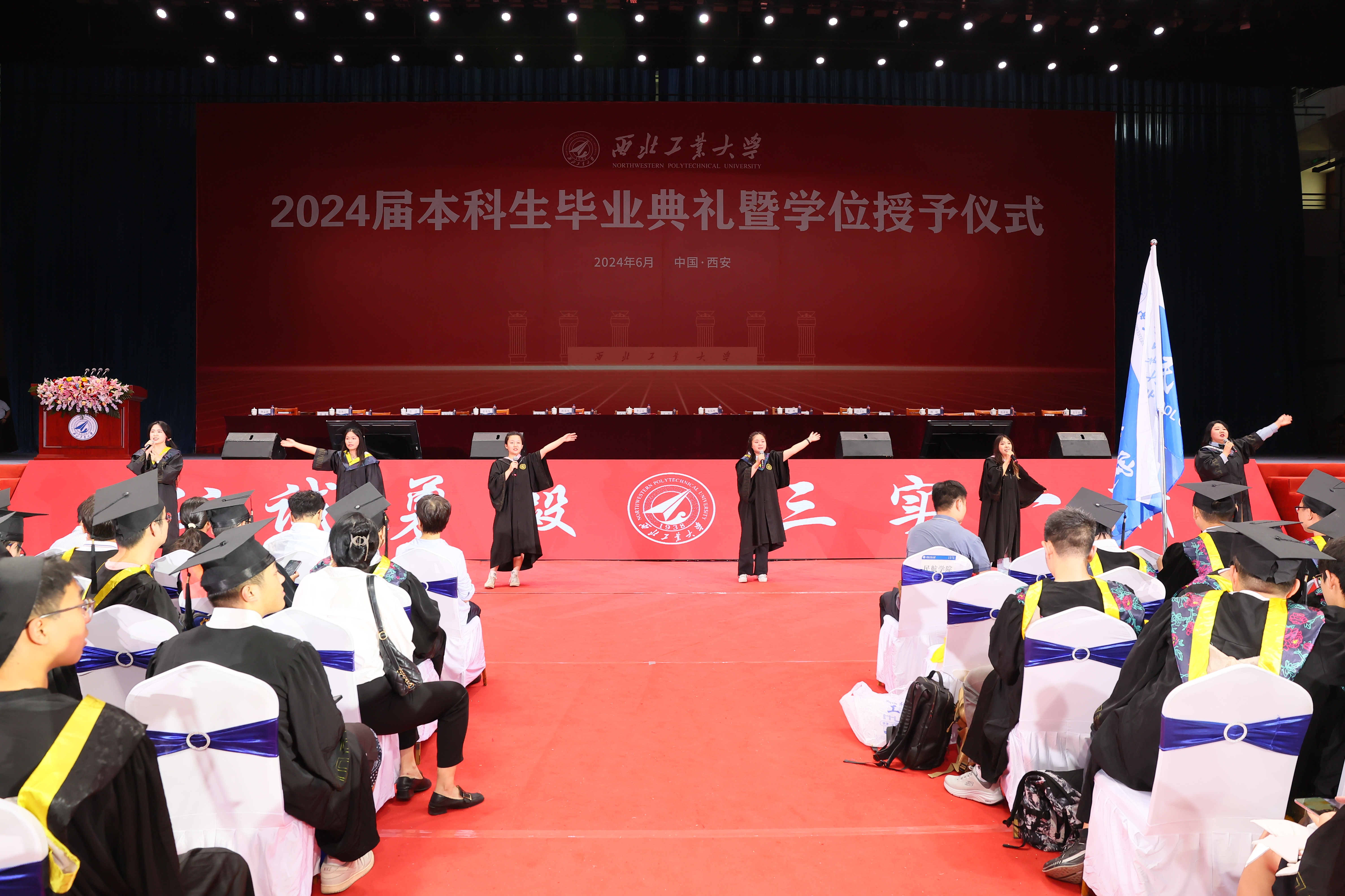 6月29日,西北工业大学2024届本科生毕业典礼暨学位授予仪式在长安校区翱翔体育馆隆重举行。4898名本科生圆满完成学业,在师长亲友的共同见证下,完成了在西工大的最后一课,开启了人生新的篇章。