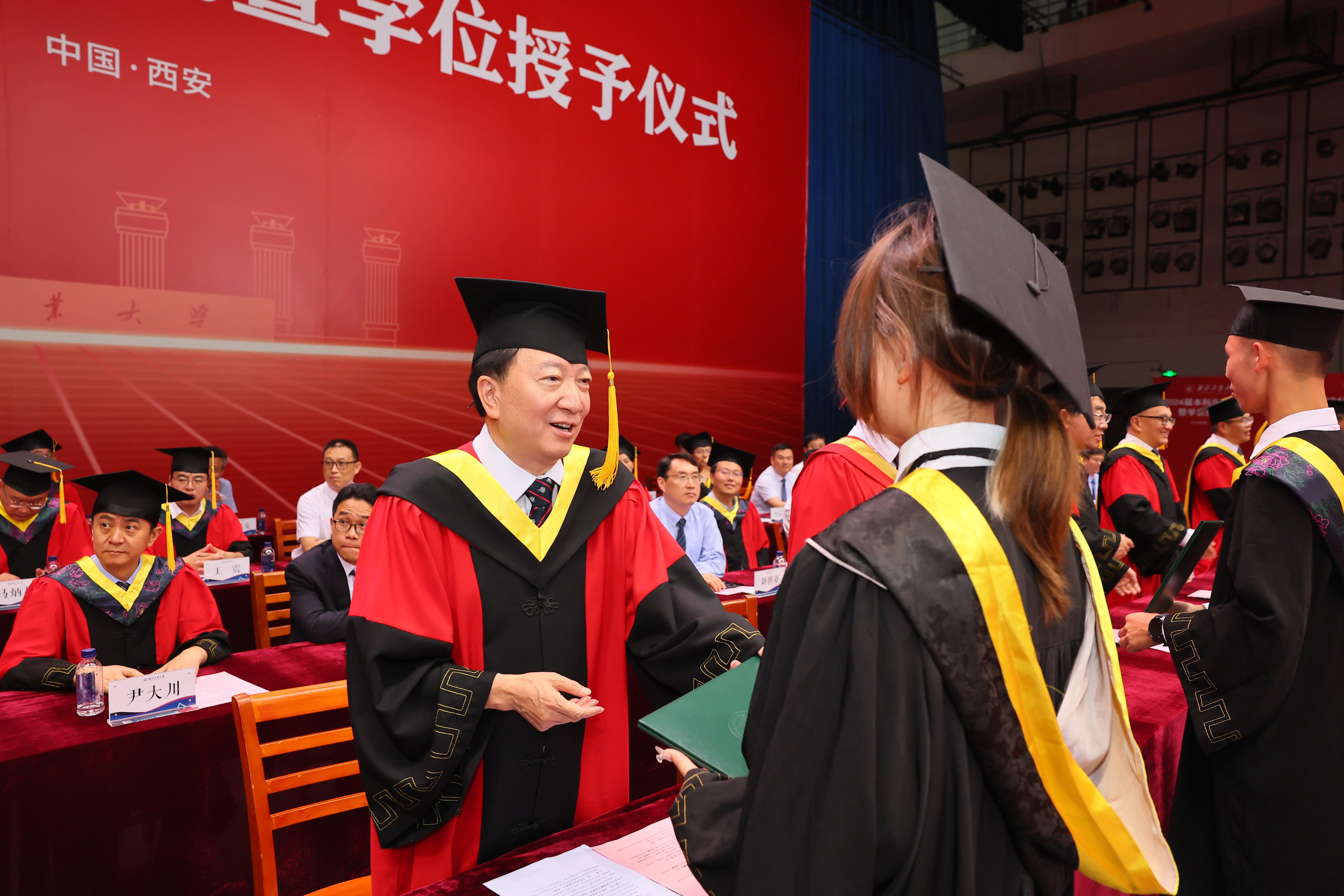 毕业典礼开始前,校领导,院士代表,校友代表,校学位评定委员会委员还与2024届本科生“优秀毕业生”合影,祝贺同学们以优异的成绩圆满完成本科阶段的学业。