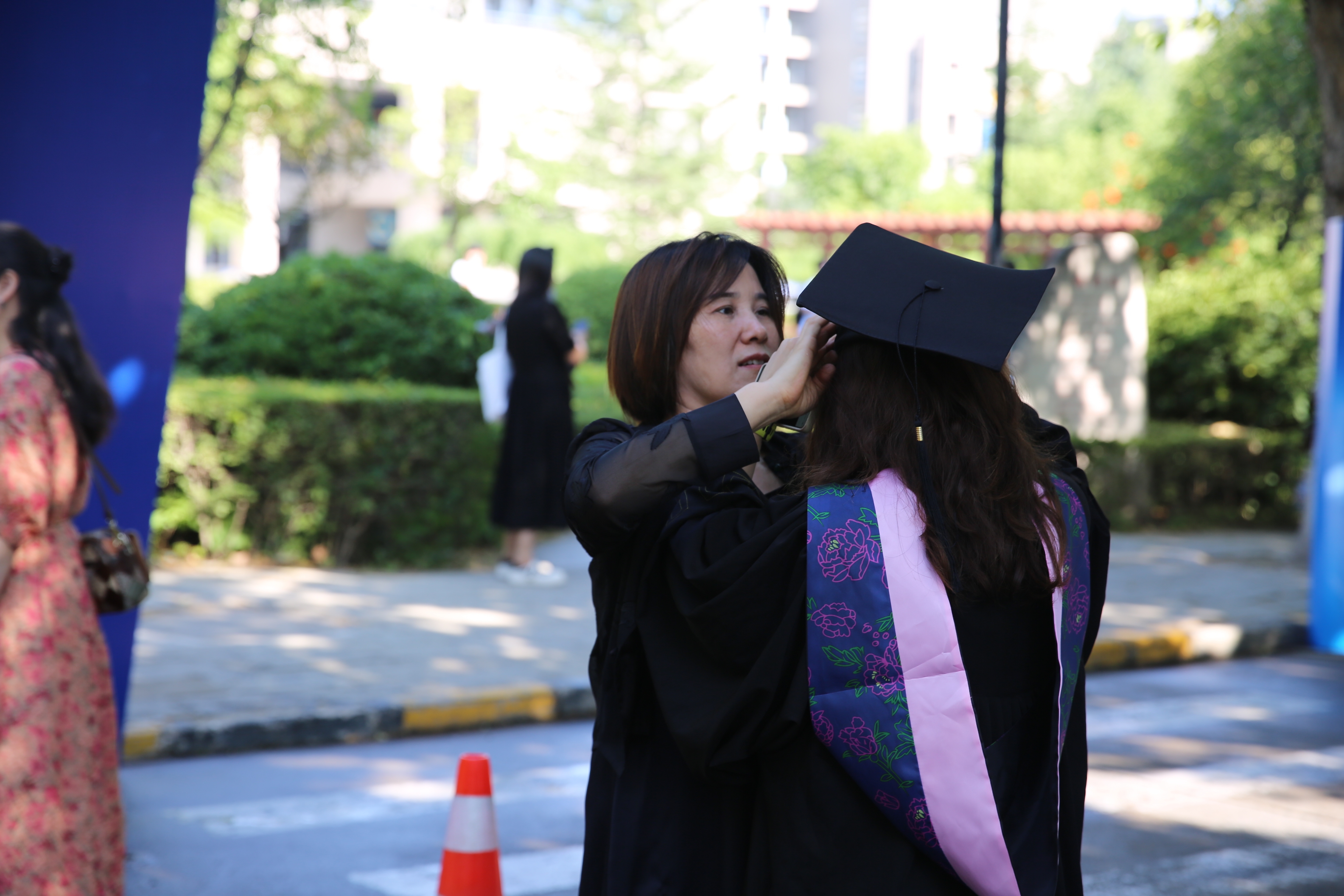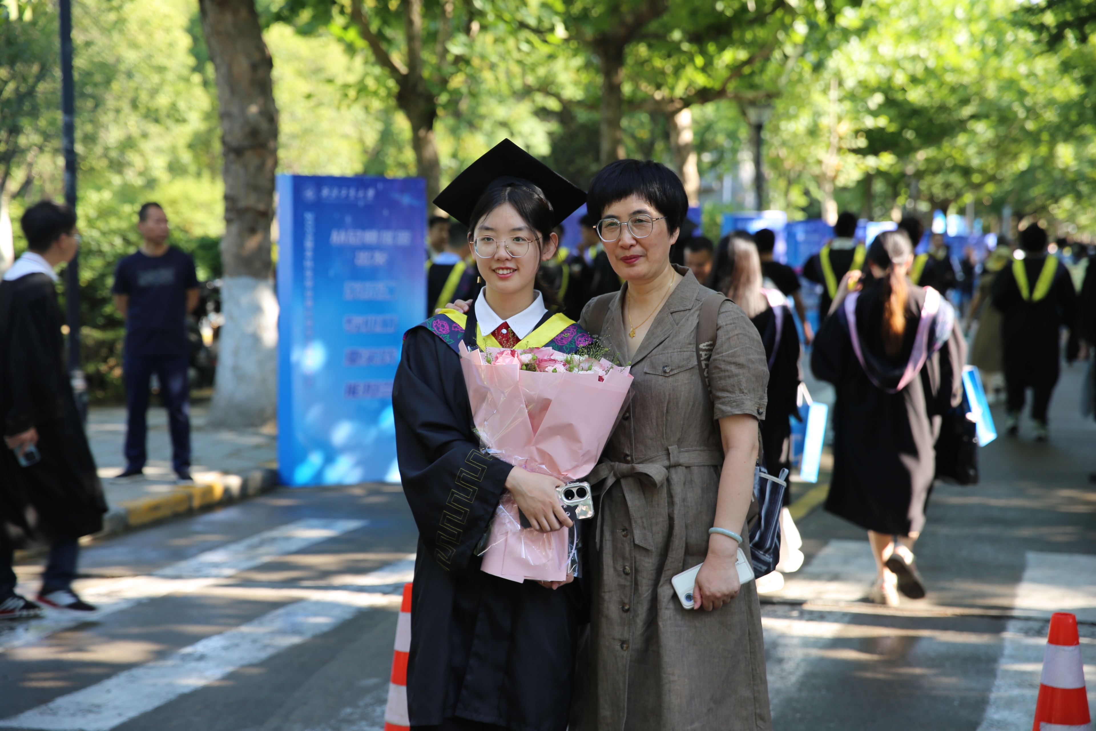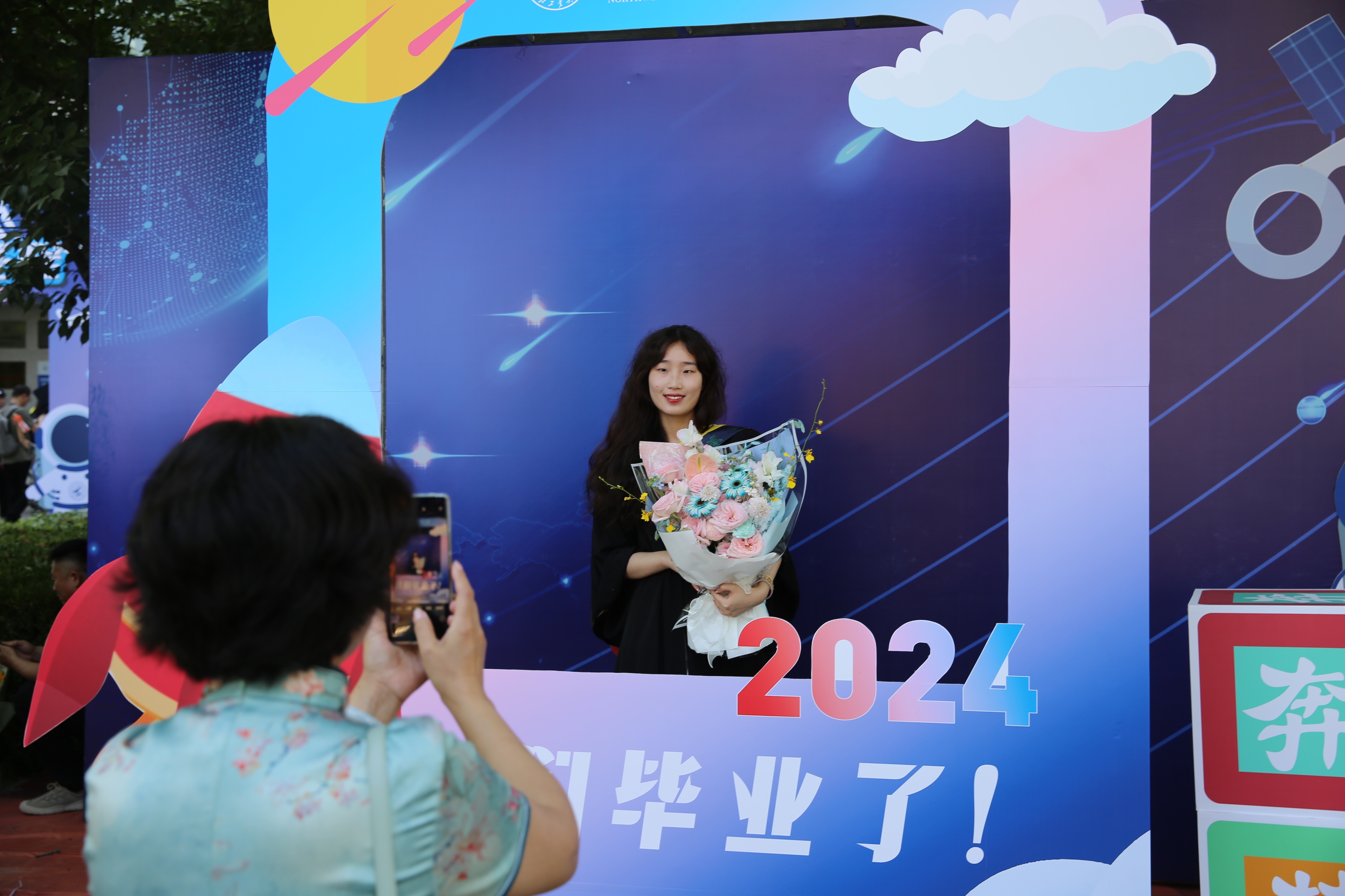 学校在翱翔体育馆西侧马路设置了拍照打卡框和展板,让同学们与师长、亲友留念,用相机定格下这珍贵时刻。
