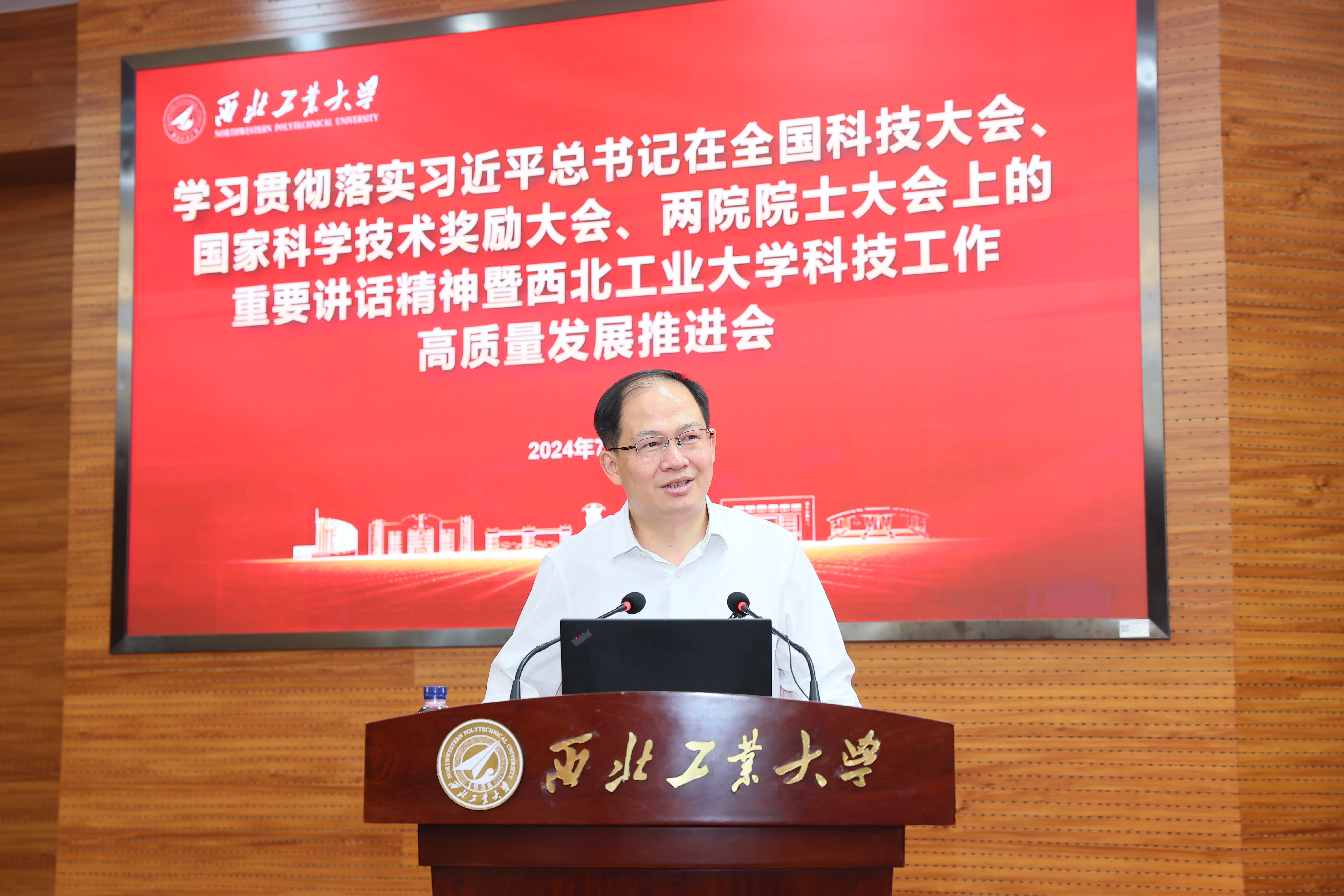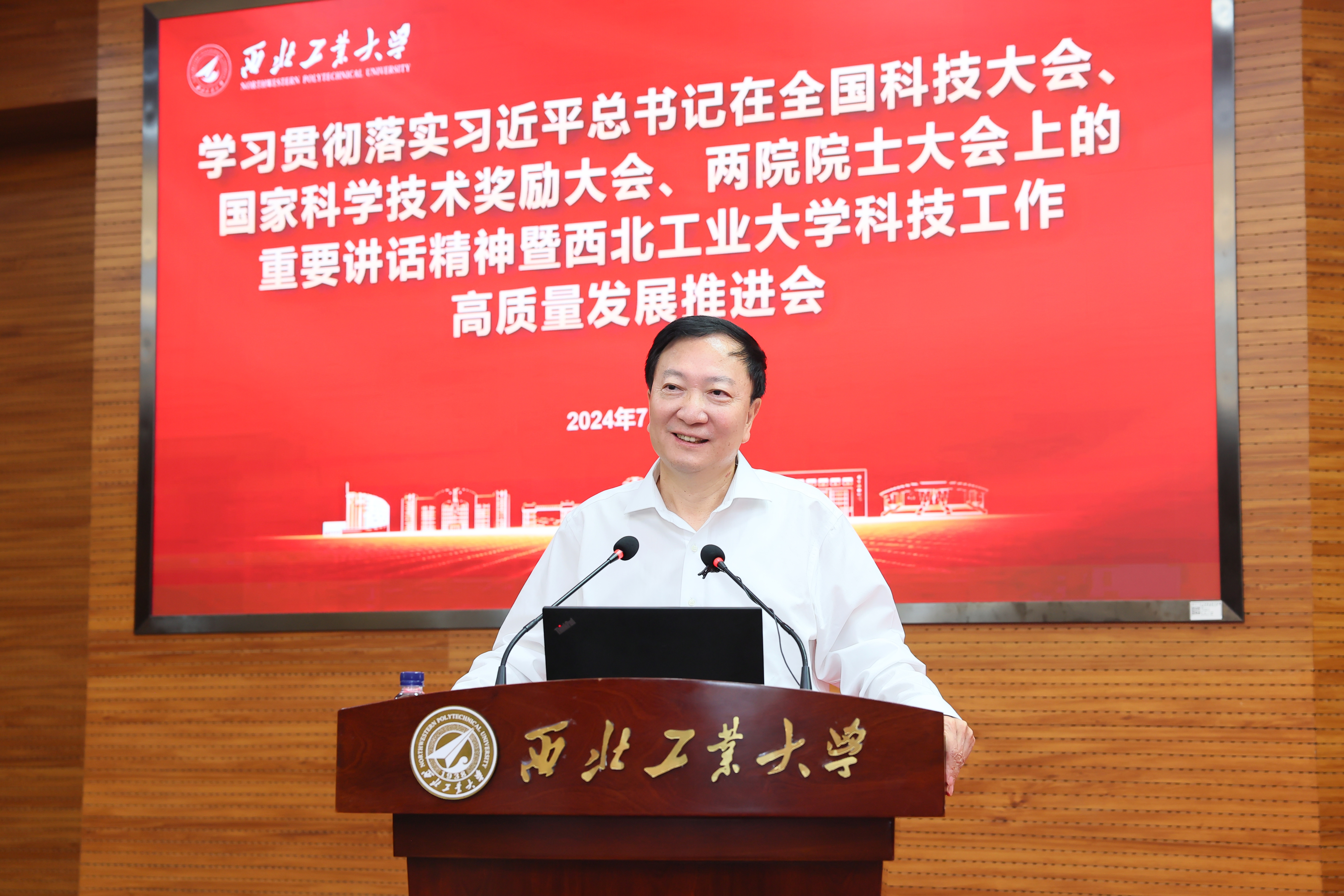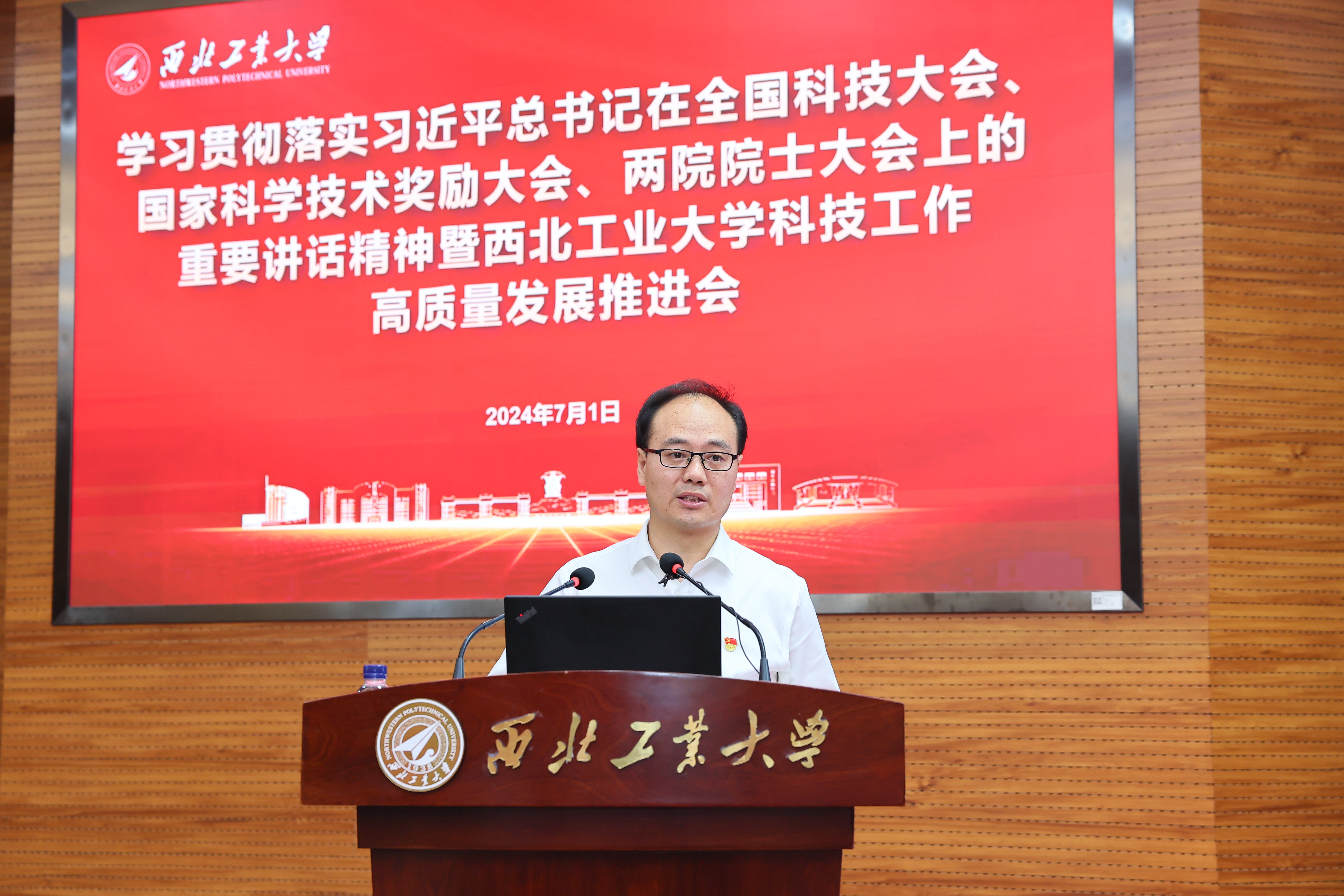 7月1日,学校召开学习贯彻落实习近平总书记在全国科技大会、国家科学技术奖励大会、两院院士大会上的重要讲话精神暨西北工业大学科技工作高质量发展推进会、校党委理论学习中心组(扩大)学习会,研究部署贯彻落实相关工作。校党委书记李言荣出席会议并讲话,校长宋保维传达了会议精神并讲专题党课,国家奖获奖代表现场进行了交流分享。会议由副校长张开富主持。