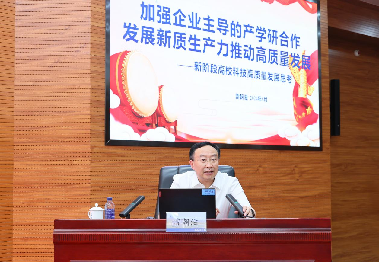 30日下午,教育部科学技术与信息化司原司长雷朝滋以《加强企业主导的产学研合作 发展新质生产力推动高质量发展——新阶段高校科技高质量发展思考》为题作专题报告。他从深刻领会中央决策;如何看待高校科技创新;加强高校有组织科研,实现高水平科技自立自强等三个方面阐释解读了科技创新和产业创新,对加强高校有组织科研、构建创新体制机制具有重要的指导意义。
