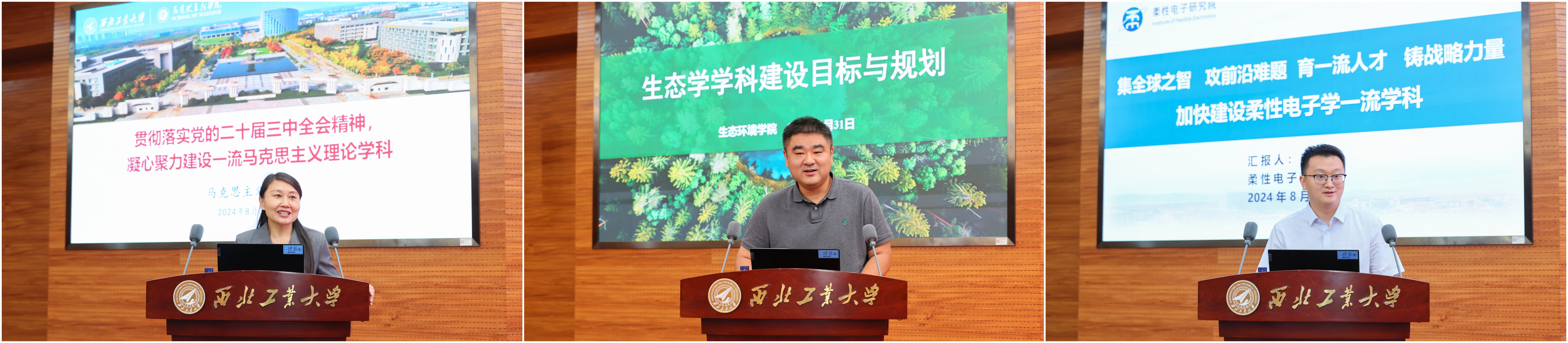 航天学院院长黄攀峰、计算机学院院长尚学群、化学与化工学院院长顾军渭、管理学院院长车阿大、马克思主义学院院长杨云霞、生态环境学院院长邱强、柔性电子研究院院长官操等七位同志围绕本单位学科建设情况、下一步工作举措作交流发言。大家一致表示,将持续锚定“127”近期发展目标和“天下工大、世界三航”远景目标,汇聚力量、真抓实干,以核心关键指标创新学科发展、提升核心竞争力,为学校“双一流”建设贡献力量。